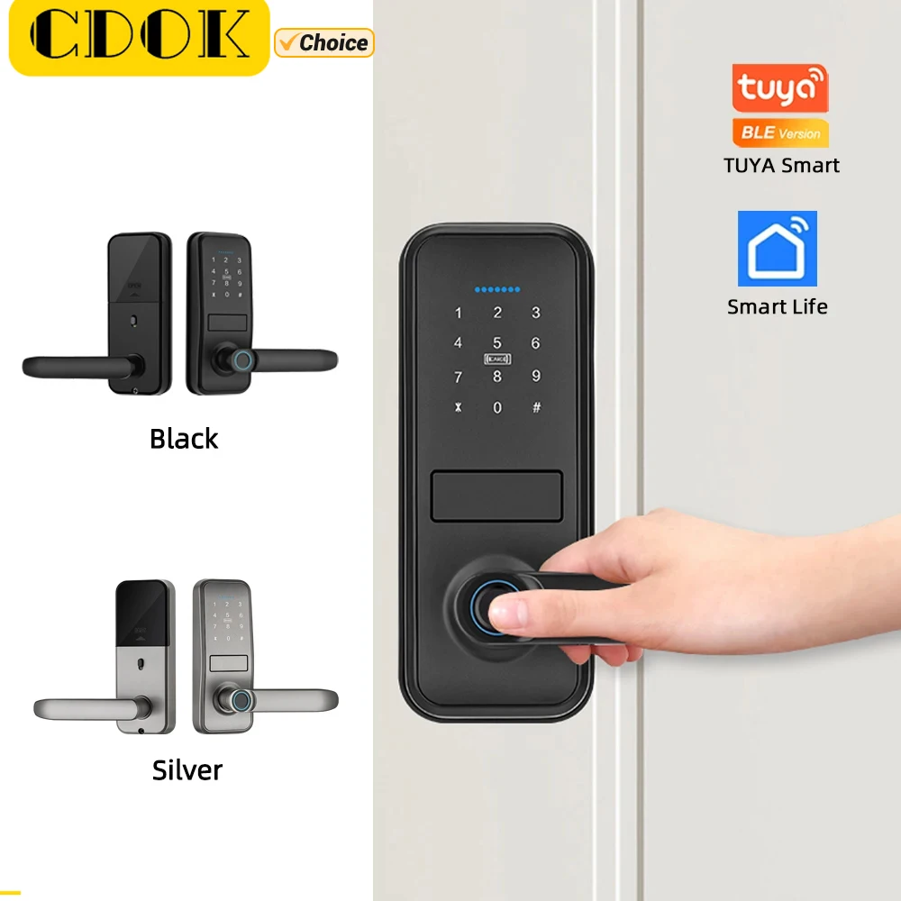 CDOK P13 Smart Biometric Fingerprint Door Lock Electronic Door Lock Tuya/Smartlife App Set Fingerprint/ Password/ Card Unlock