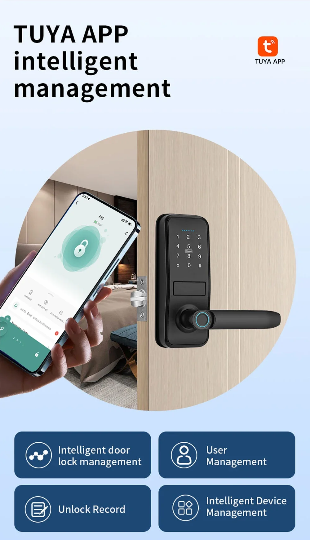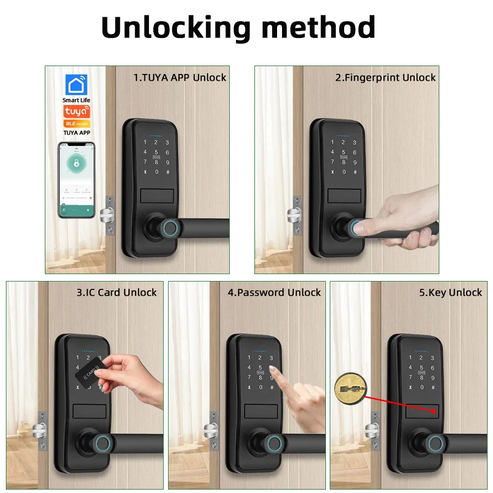 Unlock methods: Tuya APP / Fingerprint / Password / Smart Card / Key Unlock