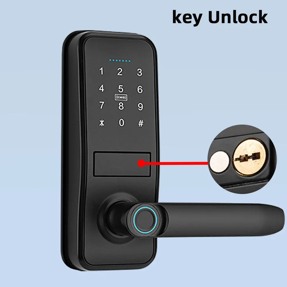 Unlocking mode: Fingerprint/Password/Swipe card/Key/TUYA APP