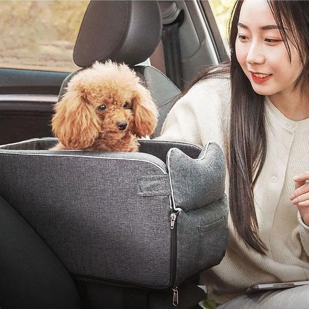 5.Convenient Interaction: With our Center Console Dog Car Seat, you can enjoy convenient interaction with your pet. Watch them sit comfortably in the passenger seat, touch and feed them easily, and boost your bond with them