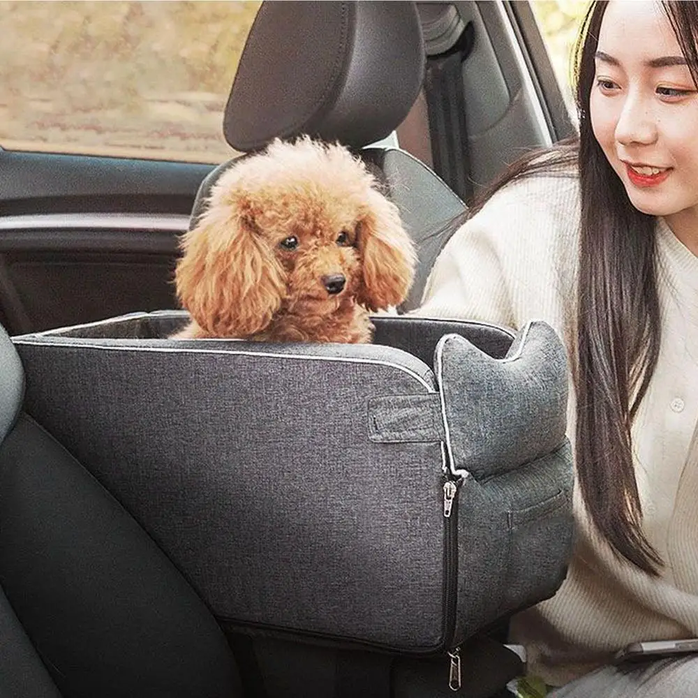 Center Console Dog Car Seat Puppy Car Seat Bed Portable Armrest Booster Seat Non-slip Dog Protection Seat With Cooler Mat