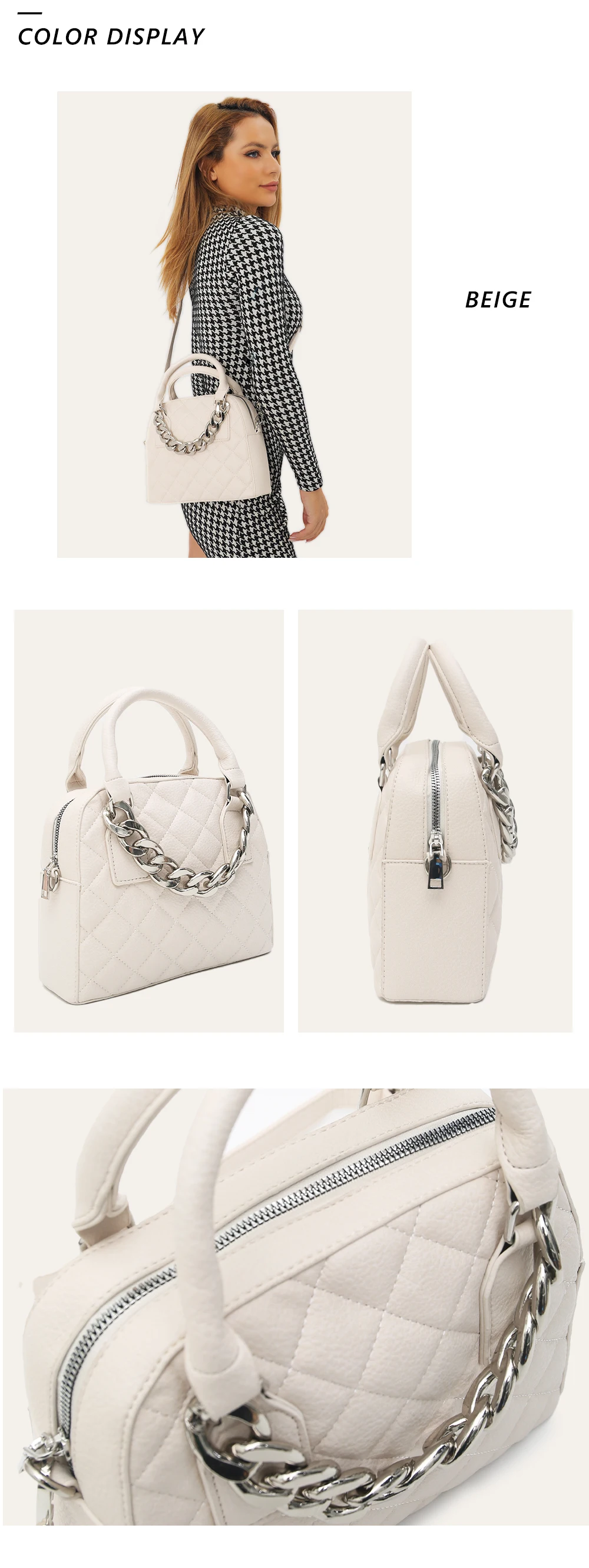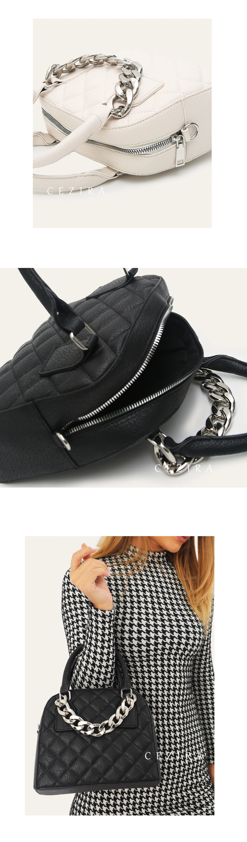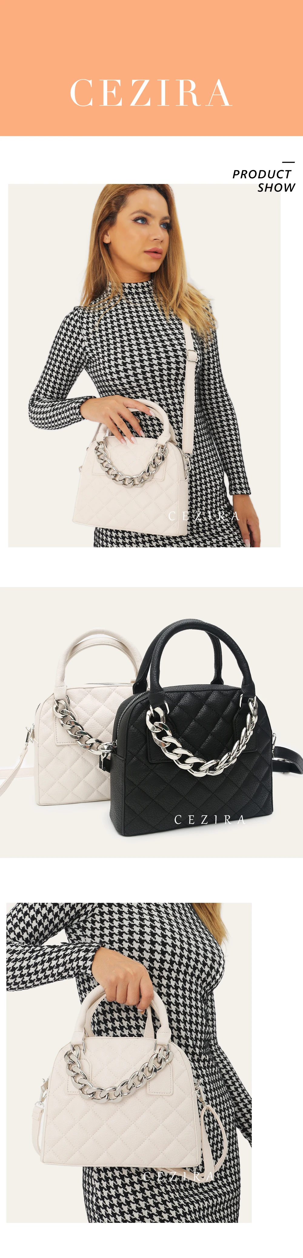 CEZIRA Luxury Quilted PU Vegan Leather To-handle Bags for Women Fashion Metal Chain Zipper Closure Cross Body Shoulder Handbags