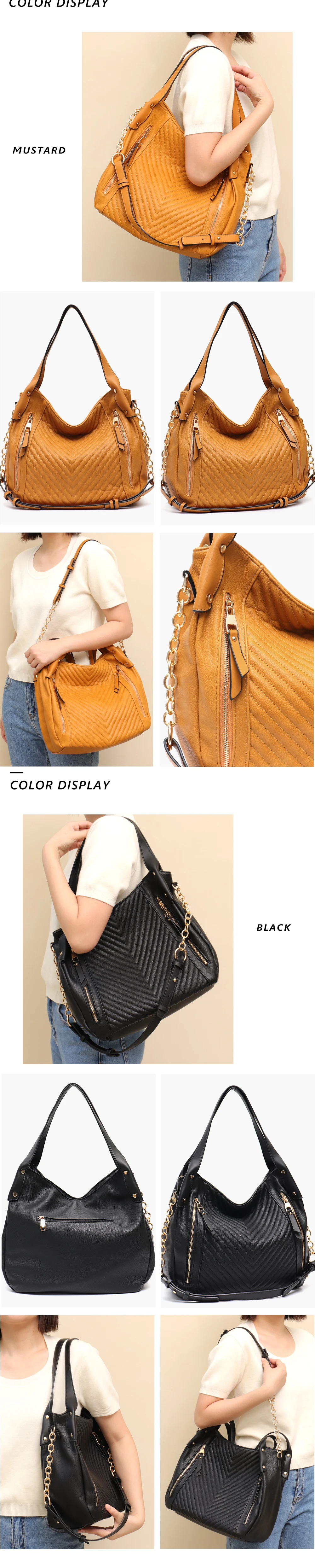 CEZIRA Women Daily Large PU Vegan Leather Shoulder Bags Fashion Chain Strap Luxury Thread Tote Female Casual Hobo Handbags Purse