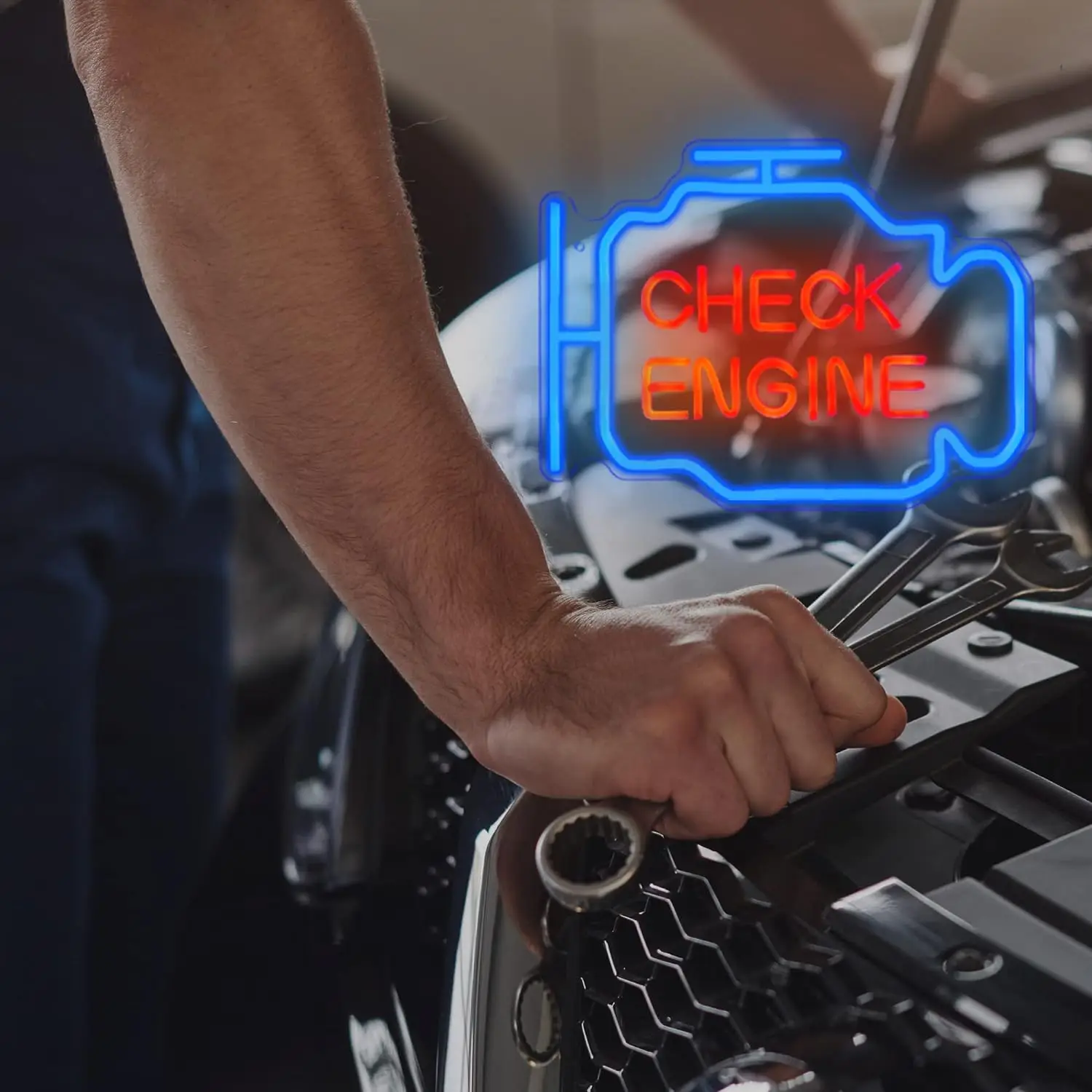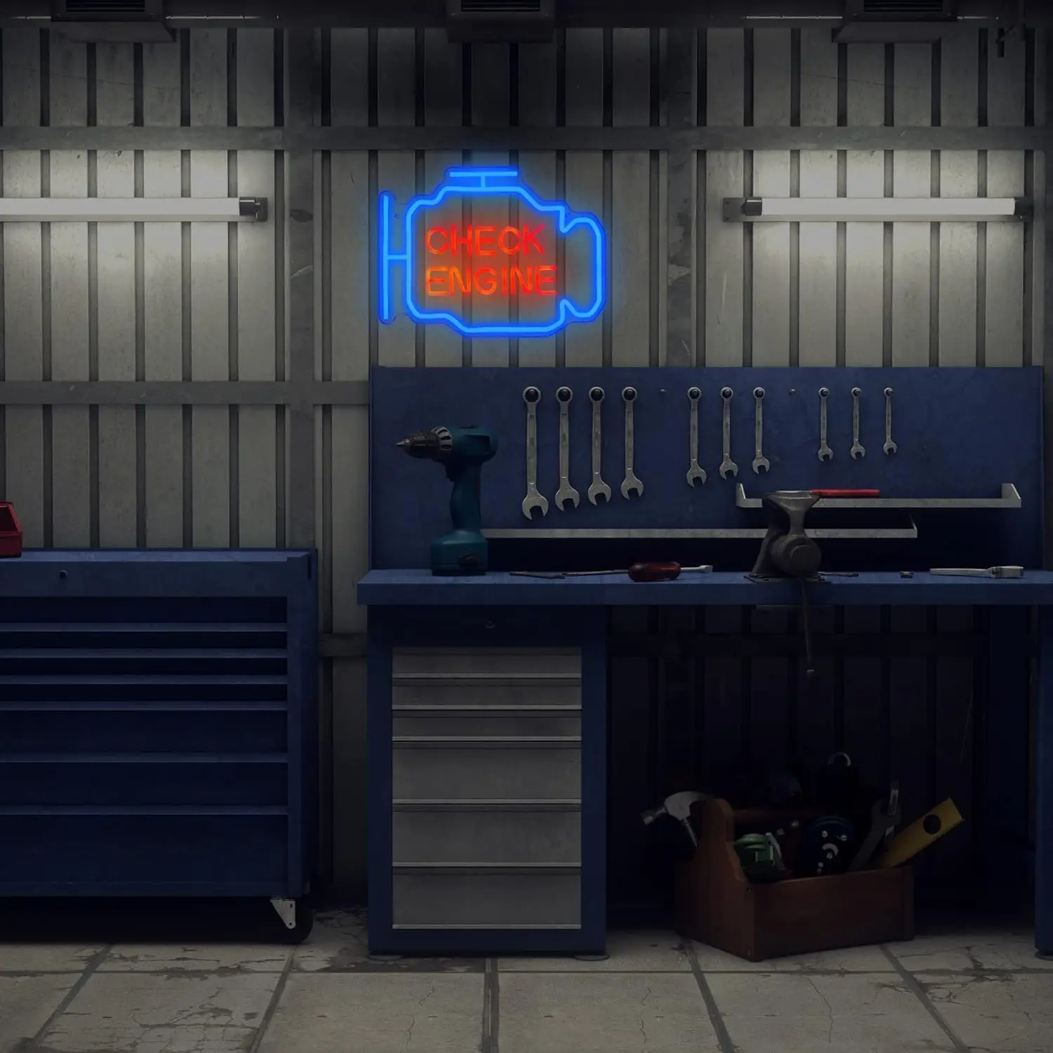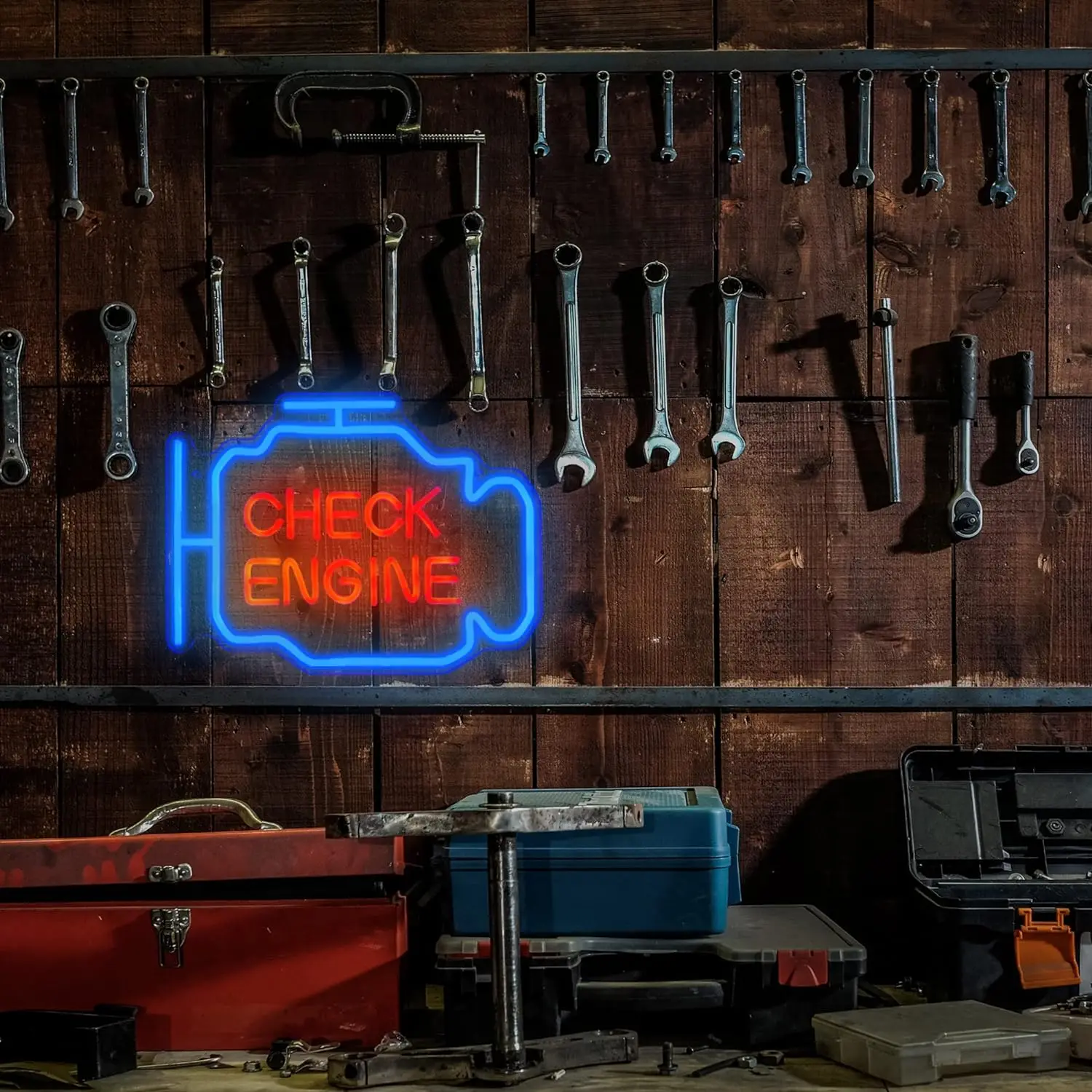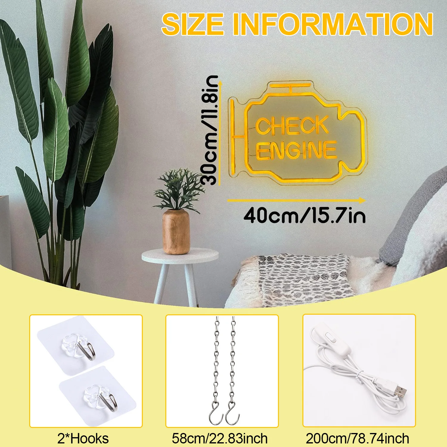 Check Engine Neon Sign for Wall decor Dimmable Car LED Sign Night Light USB Powered for Garage Workshop Auto Repair Shop