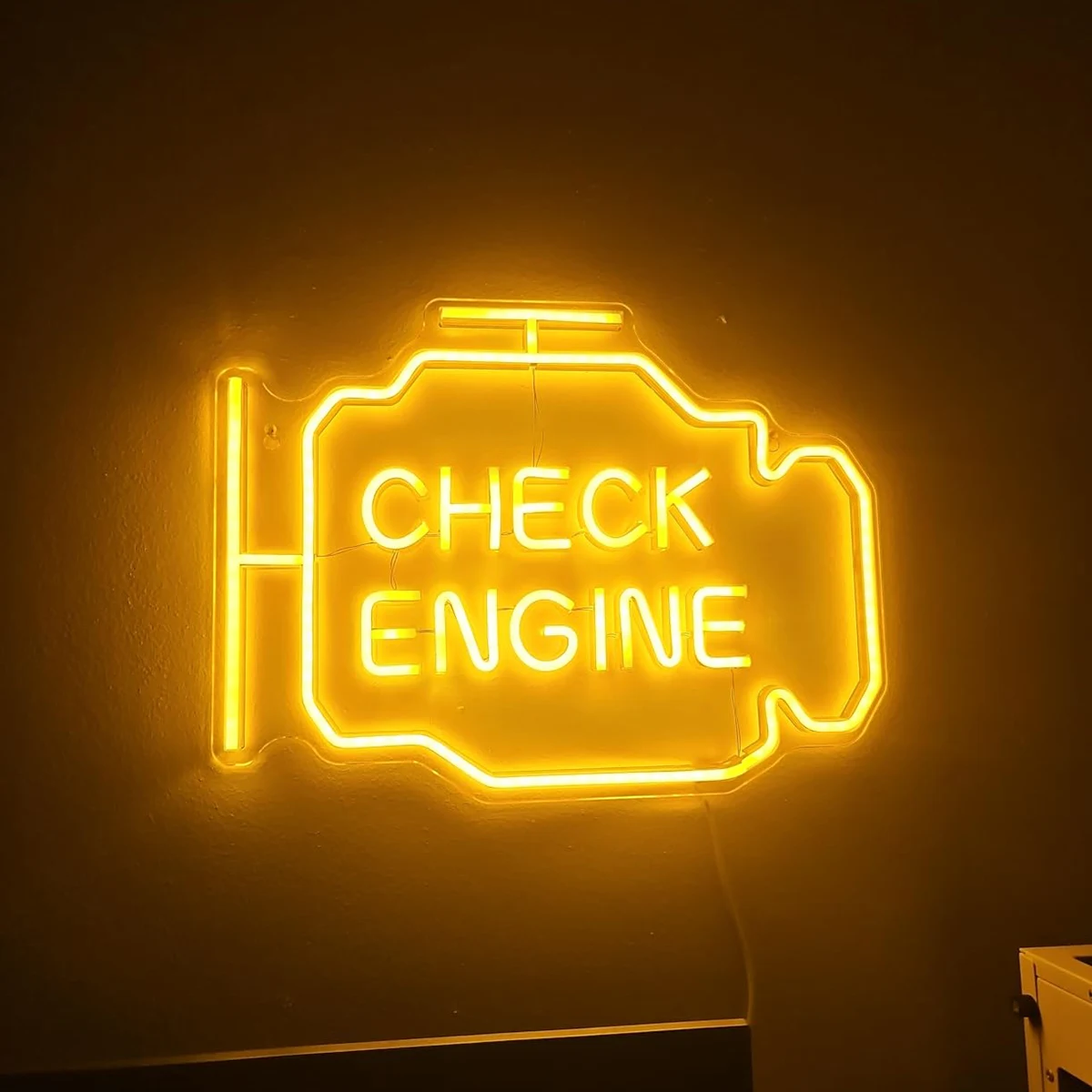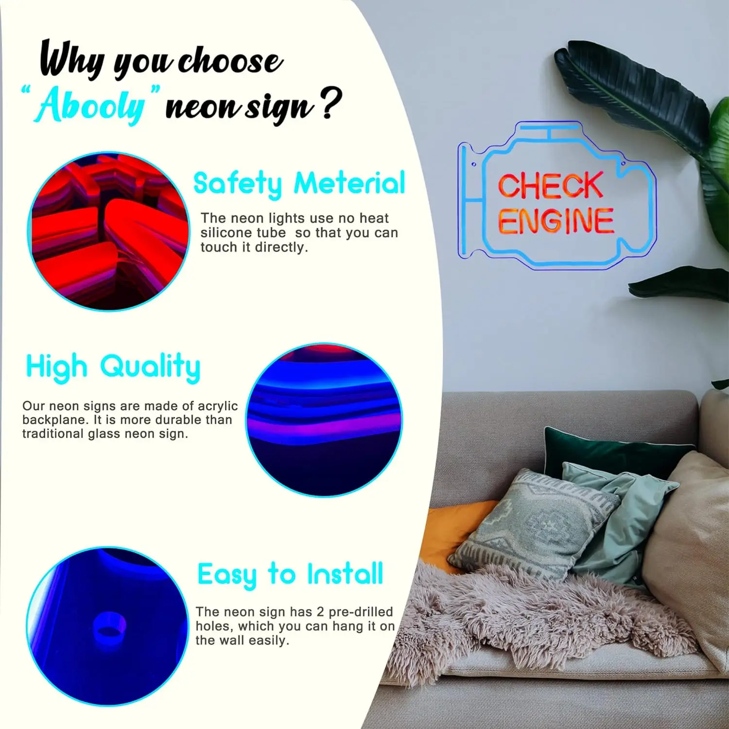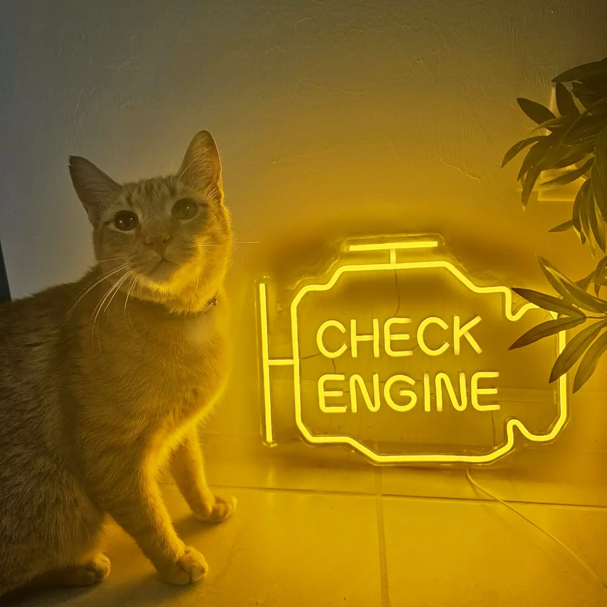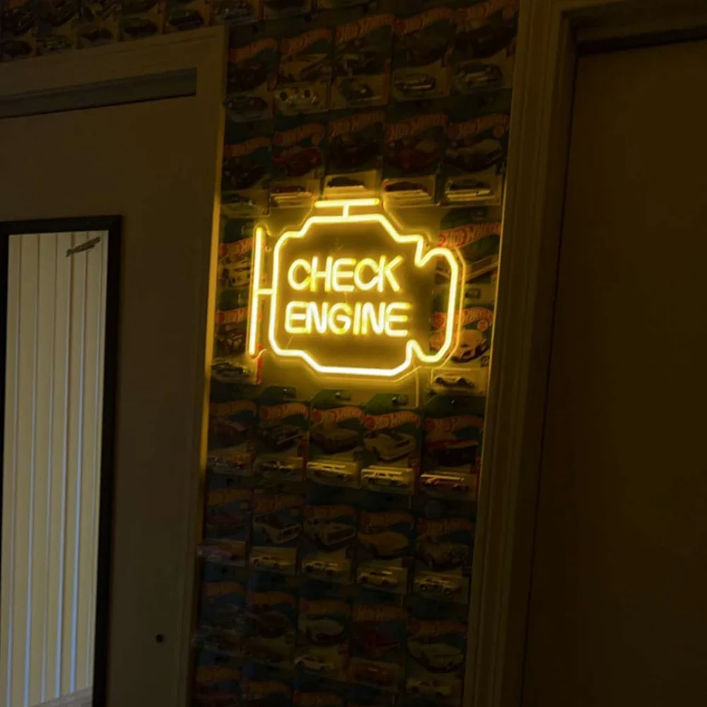 Check Engine Neon Sign for Wall decor Dimmable Car LED Sign Night Light USB Powered for Garage Workshop Auto Repair Shop