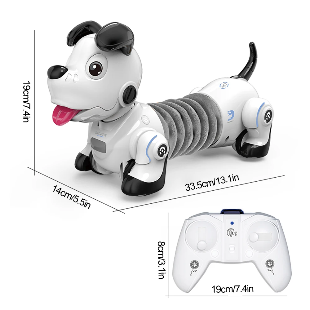 1.Infrared control: using the controller to control the dog do actions within about 8 meters.