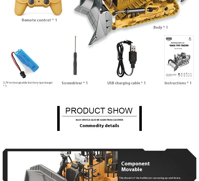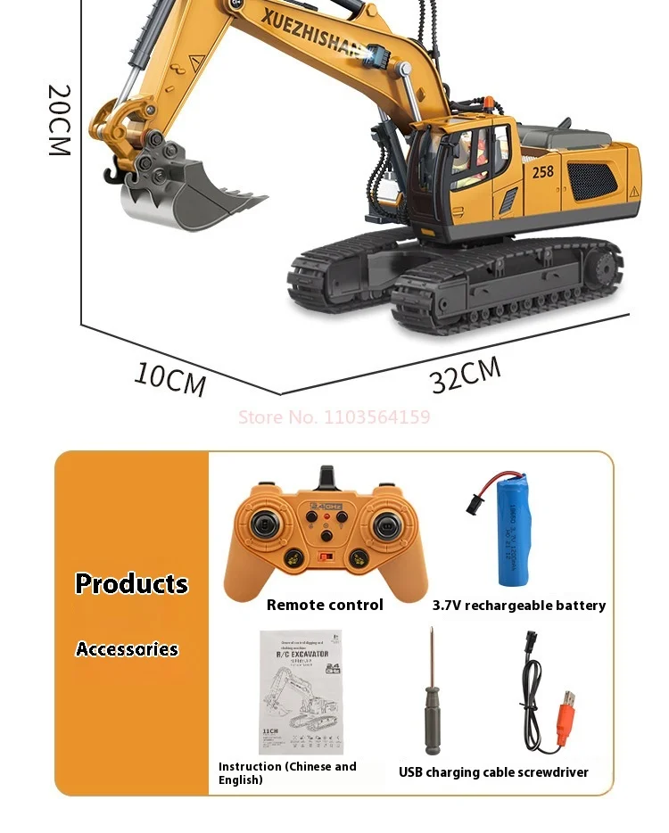 Product accessories: Excavator * 1 Remote control * 1, rechargeable battery * 1, USB charging cable * 1