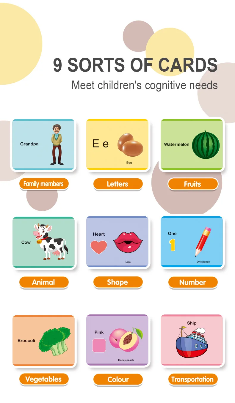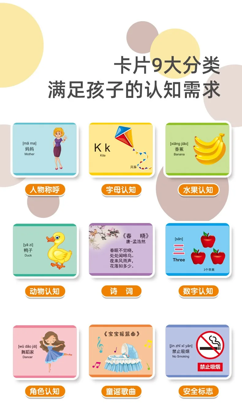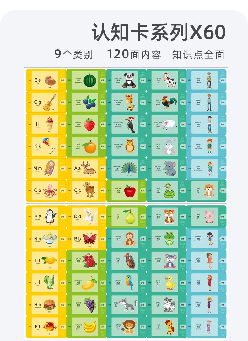 Main function: Enlightenment early education, suitable for children under 6 years old, equipped with 60cards, a total of 120 contents