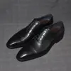 2024 Classic Genuine Leather Men’s Dress Shoes Black Brown Cap Toe Lace-Up Oxford Company Business Office Formal Shoes for Men