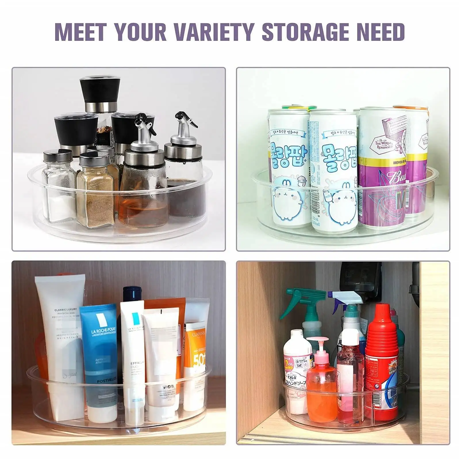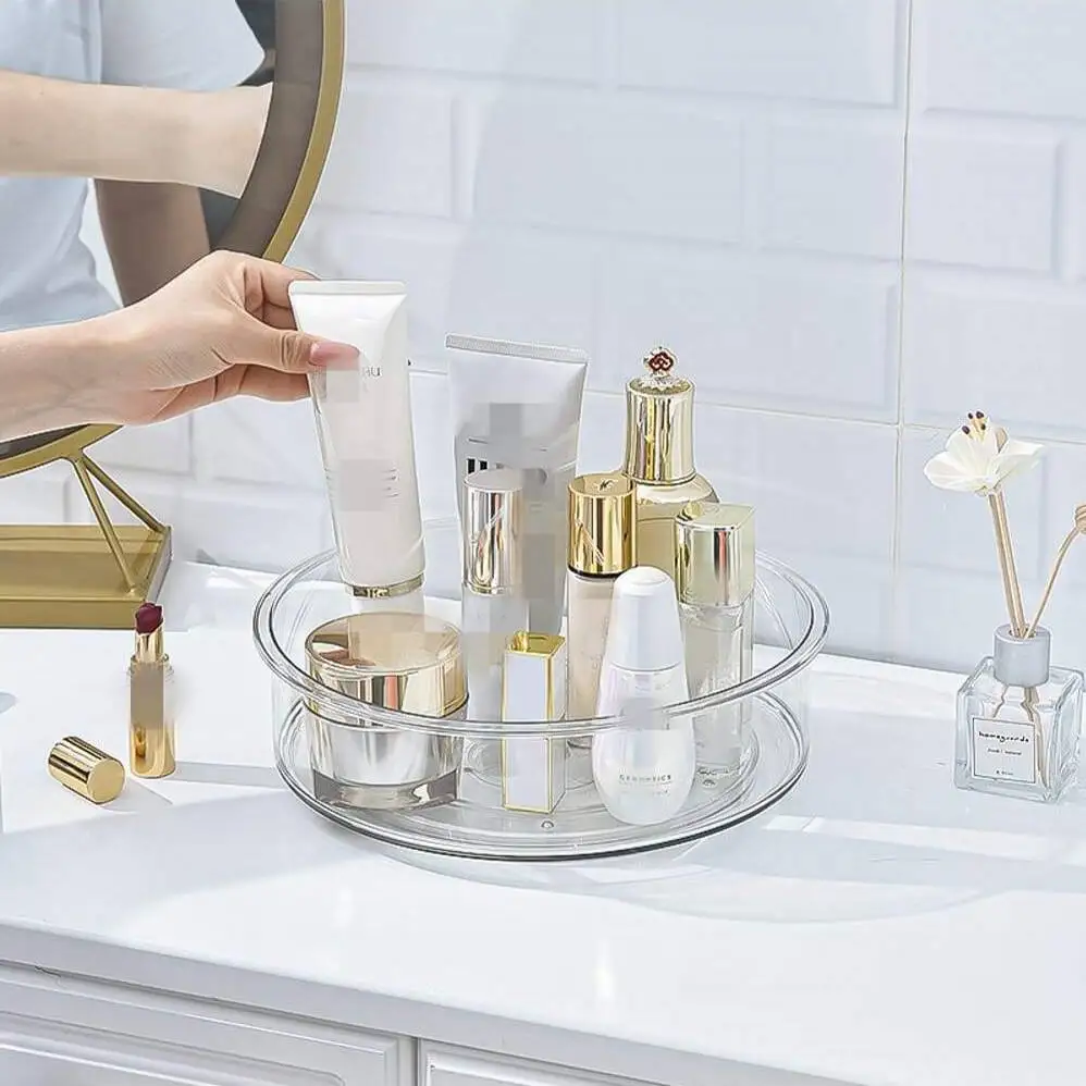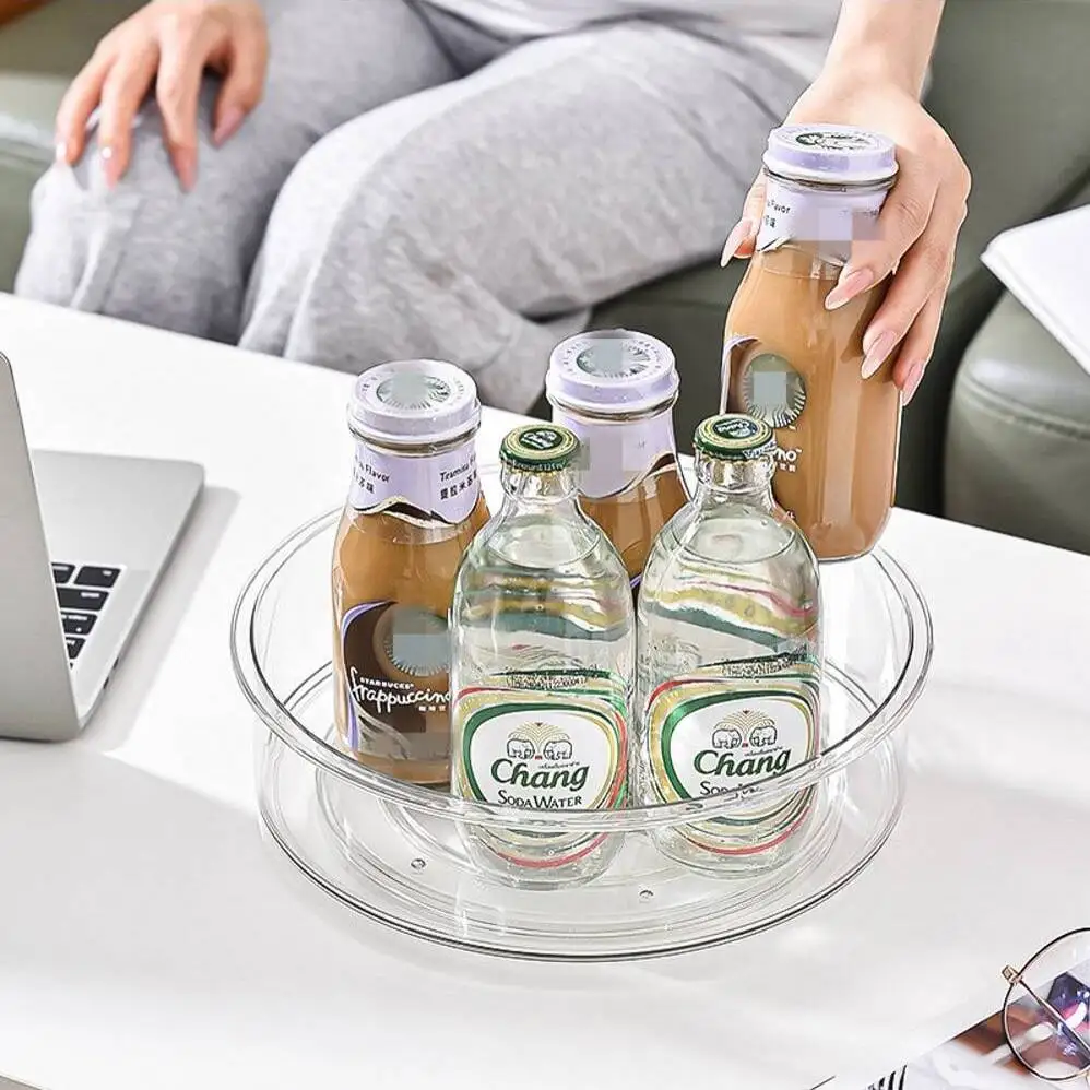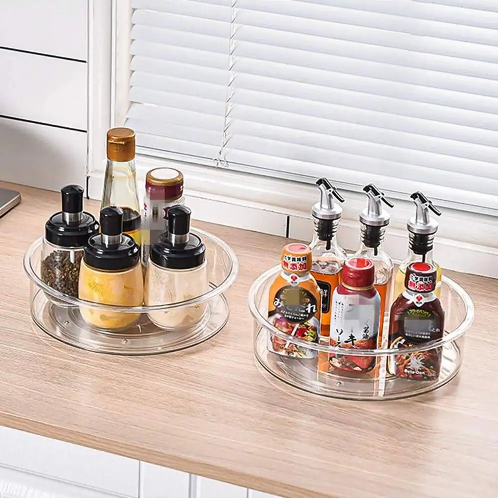 Clear Turntable Organizer Plastic Rotating Tray Home Spice Rack Cabinet for Pantry Countertop Kitchen Fridge Bathroom