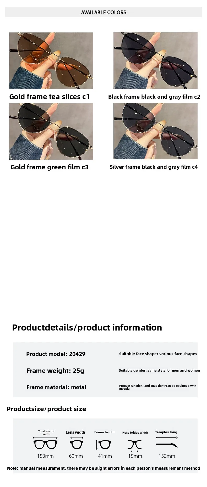 CLLOIO Small Round Frame Cat Eye Prescription Reading Sunglasses Women’s Trendy Sweet Cool Style Driving Myopia Sun Glasses