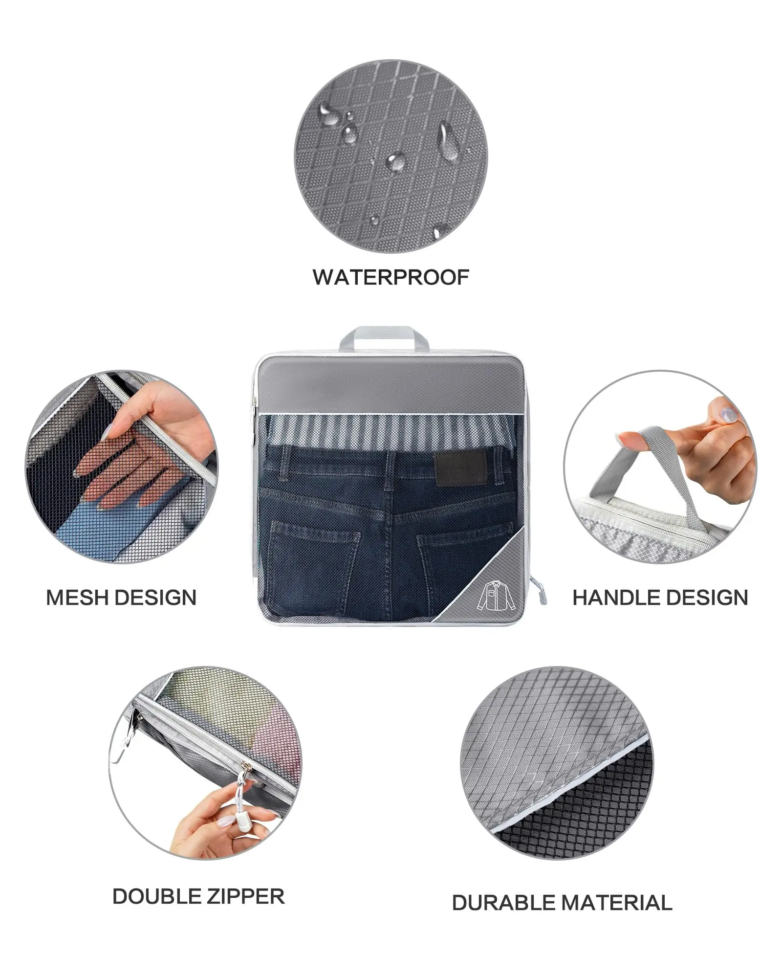 Our travel storage bags are made from high-quality waterproof fabrics that are designed to withstand the wear and tear of travel. The mesh top panel allows for easy identification of the contents and provides ventilation to prevent odors. Sturdy zippers and strong stitches ensure that the bags will last for a long time.