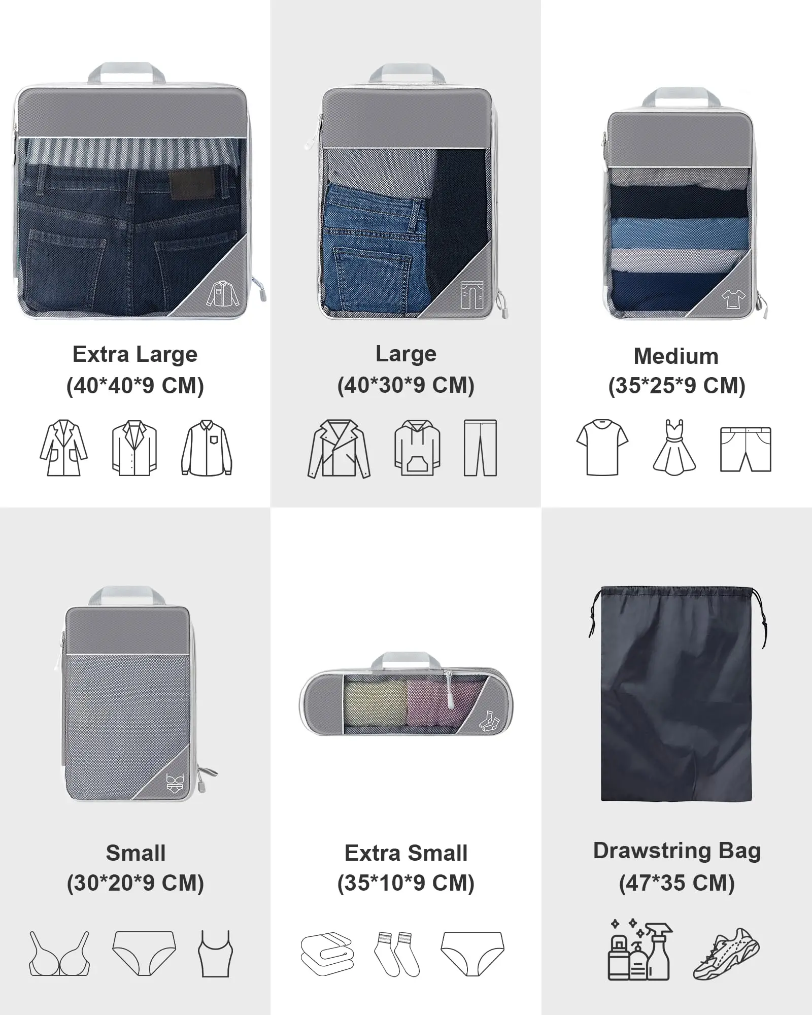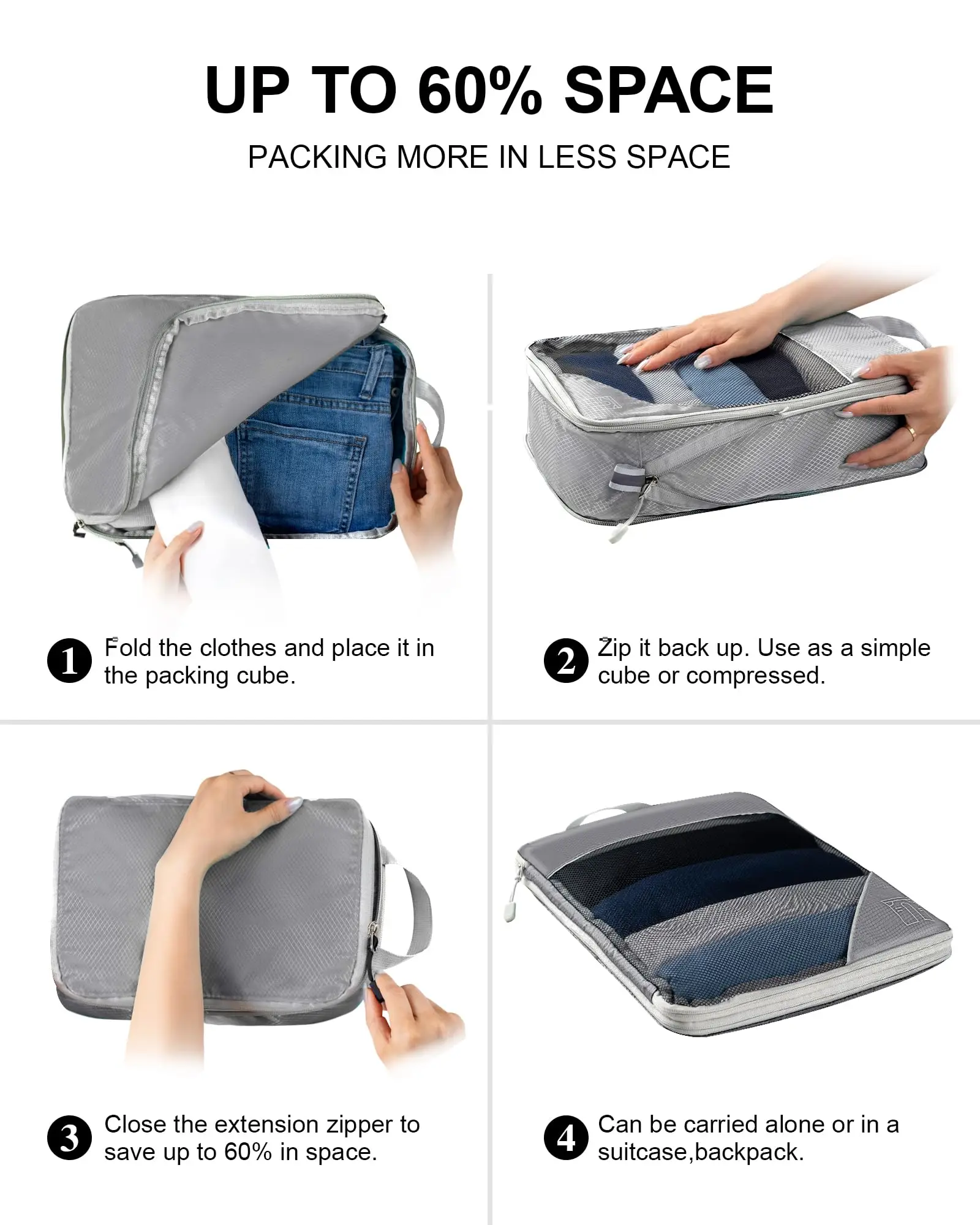 Compression Packing Cubes for Suitcases, Extensible Travel Packing Cubes, Large Medium Small Slim Packing Cube