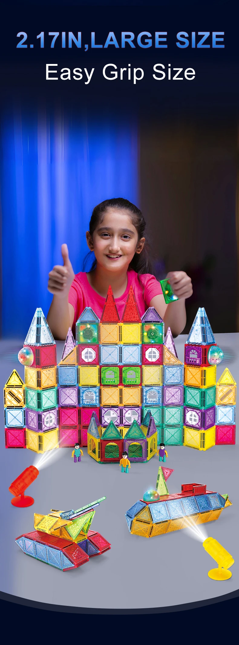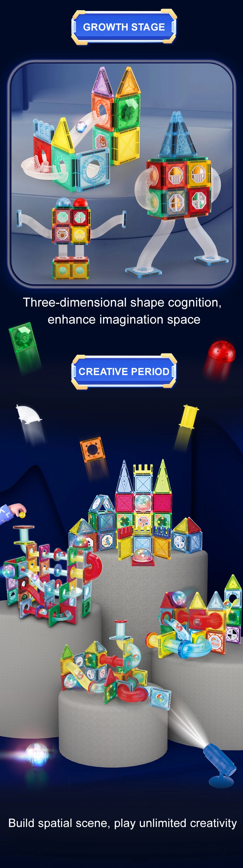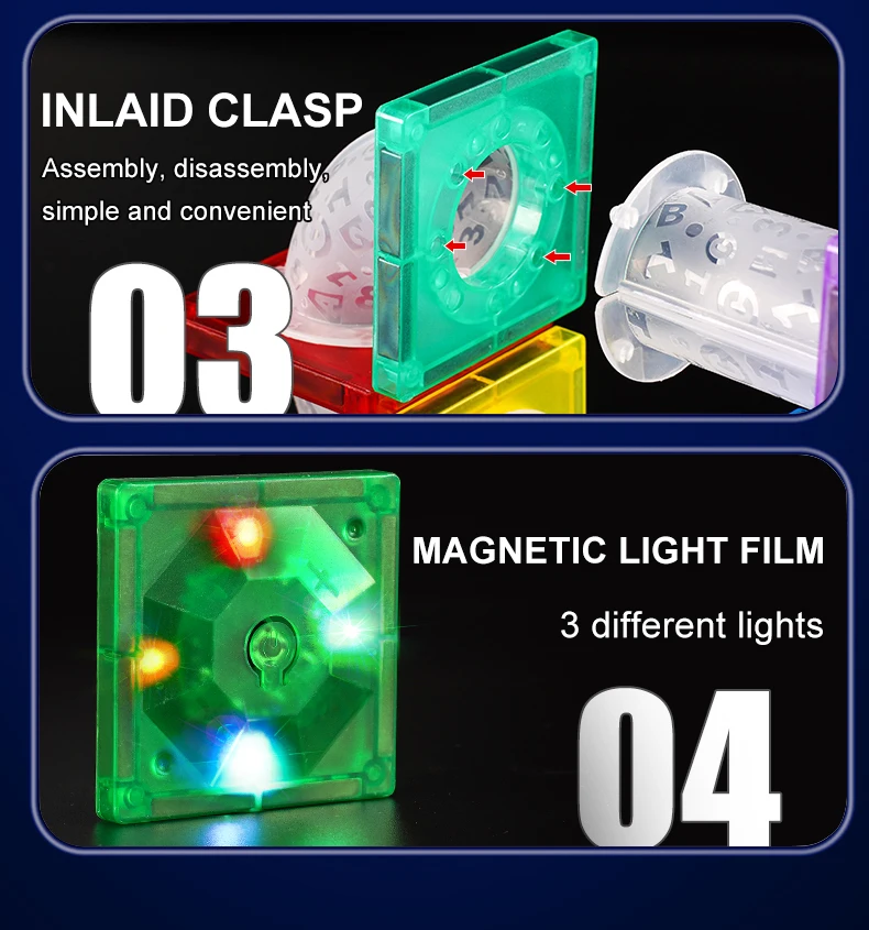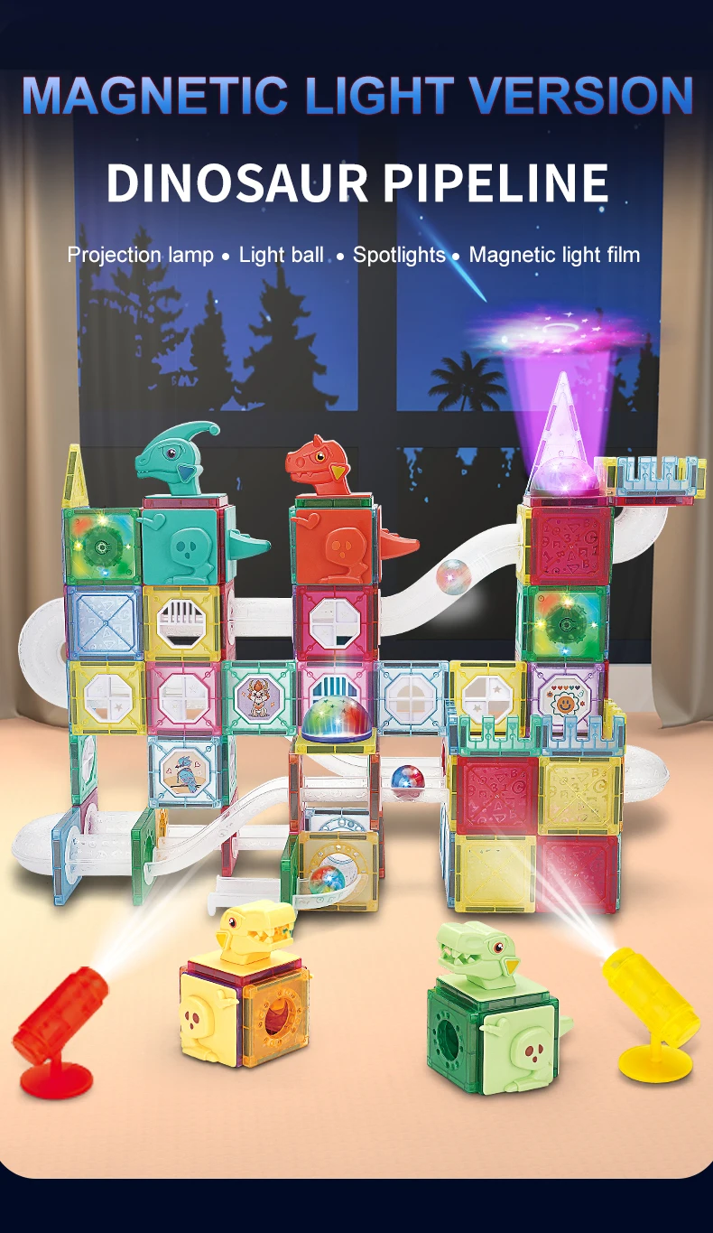 Cool pipeline magnetic building blocks equipped with lighting toys, suitable for birthday gifts for boys and girls over 3 years