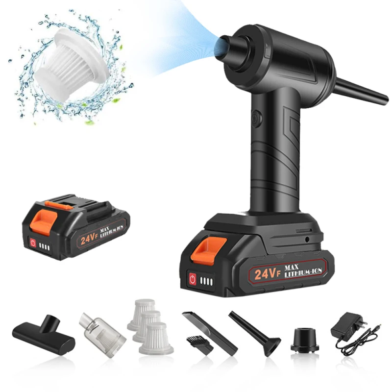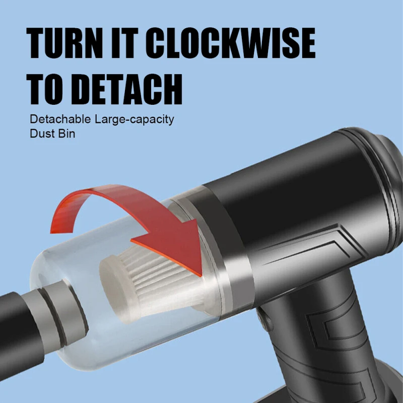 All-in-One Cleaning Solution: Experience the ultimate convenience and efficiency with our cordless vacuum cleaner. This vacuum cleaner offers both suction and blowing capabilities, making it perfect for use in both your vehicle and your home, providing a comprehensive cleaning solution.