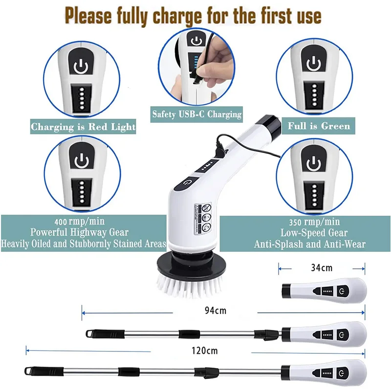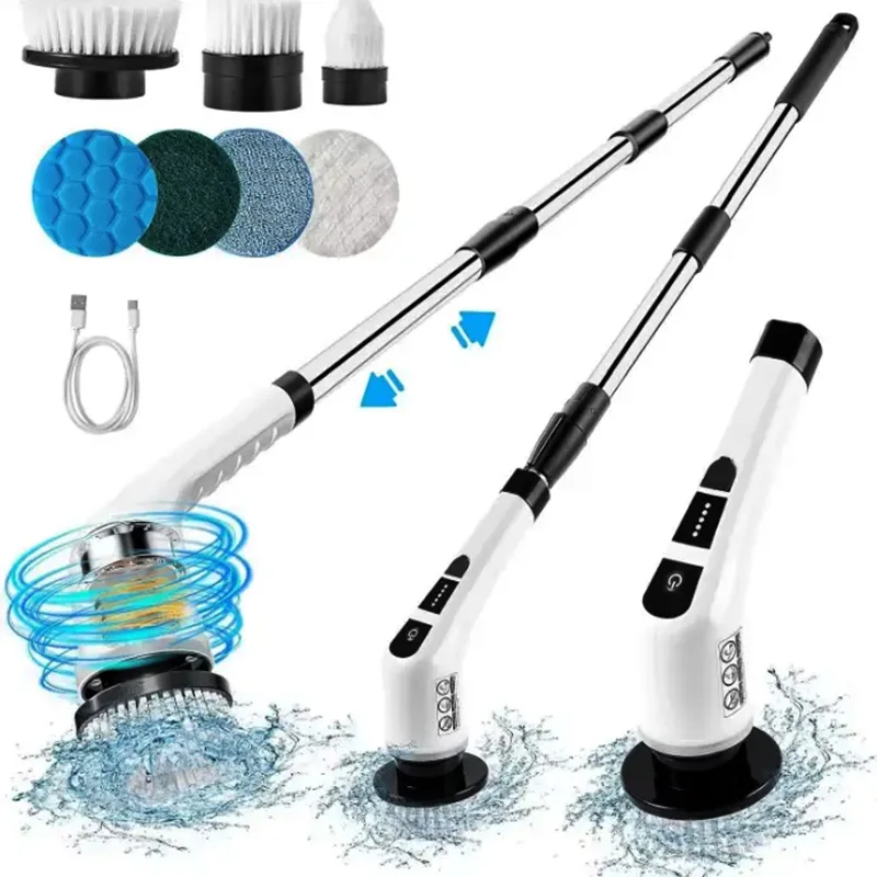 Cordless Electric Spin Scrubber Adjustable Cleaning Brush with Replacement Heads for Tub Tile Floor Car Electric Shower Scrubber