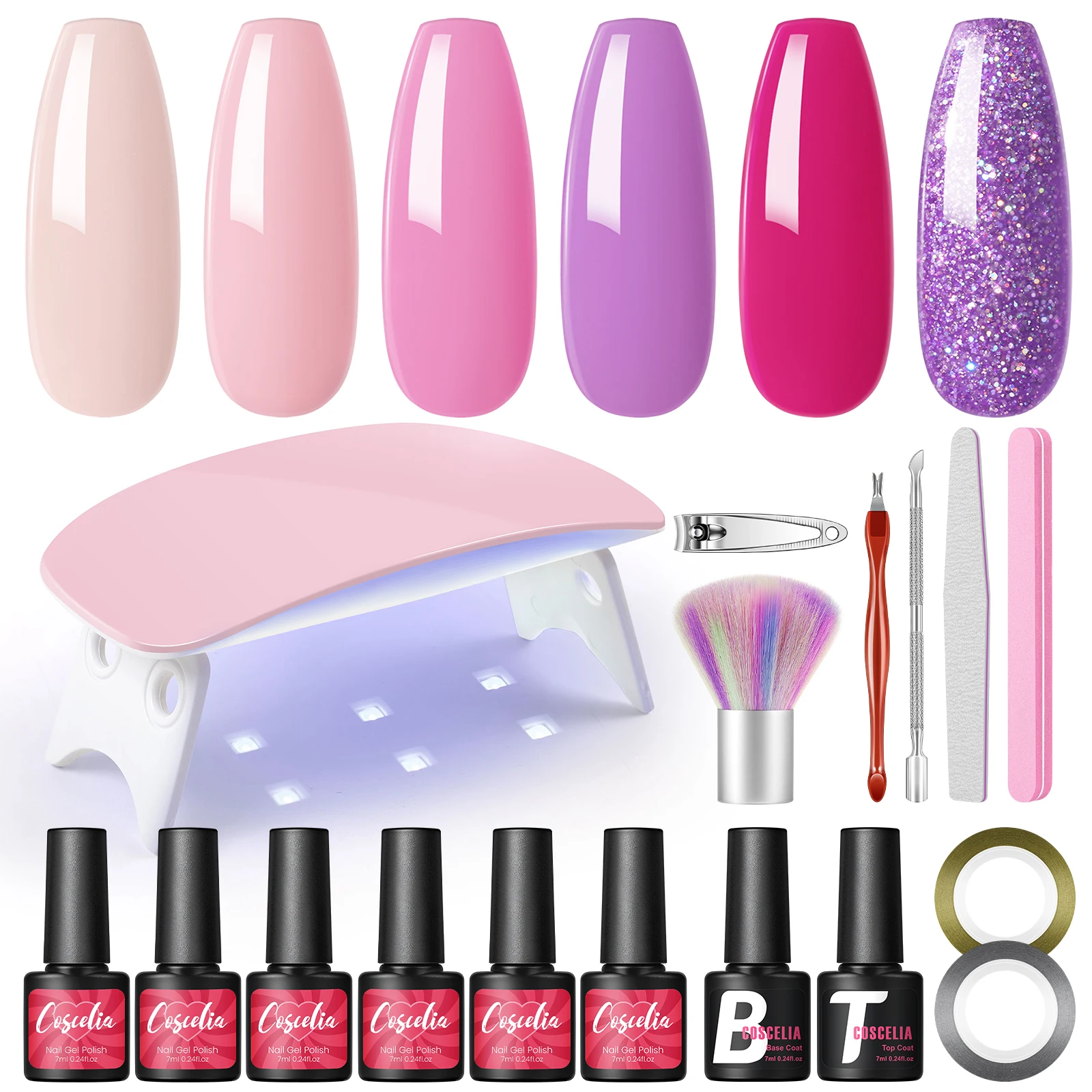 COSCELIA Manicure Set Nail Polish Gel Set with 6W LED Lamp 6 Colors Gel Polish Starter Kit Base Top Coat Manicure Brush Tools