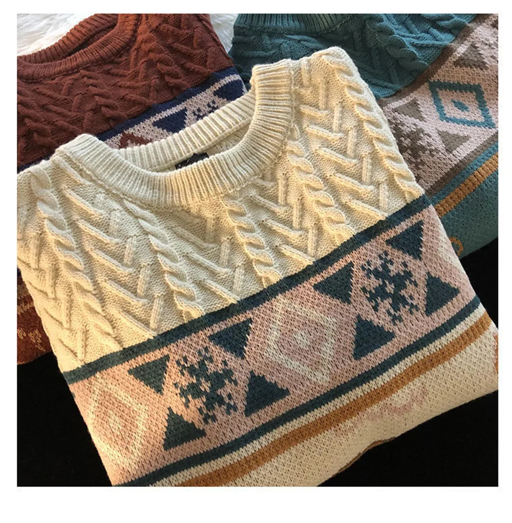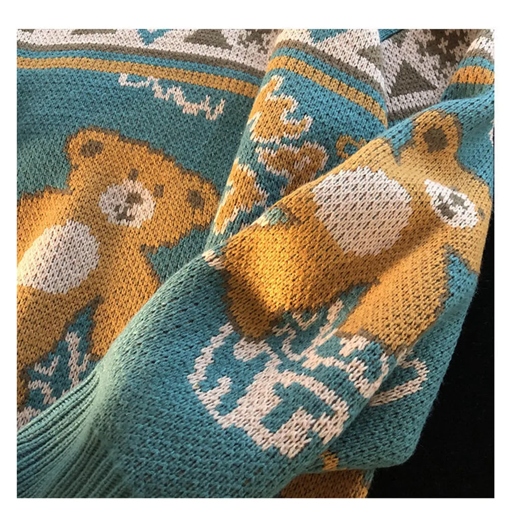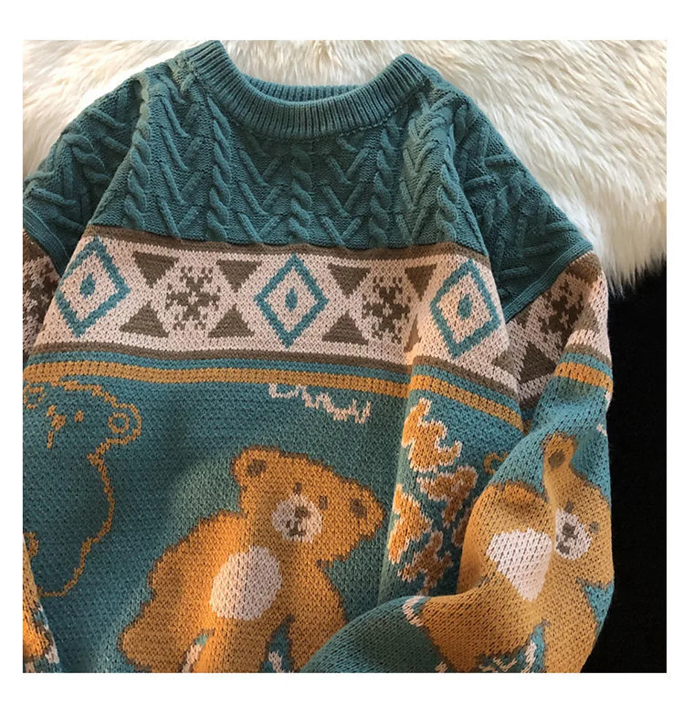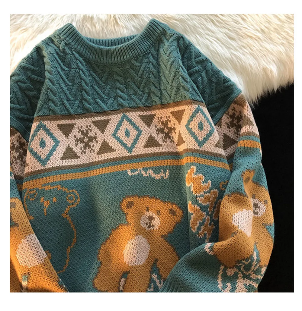 Cute Bear Tops Oversize Men High Street Knitting Sweater Tops Autumn Pullover Loose Harajuku Kawaii White Women Couple Sweaters