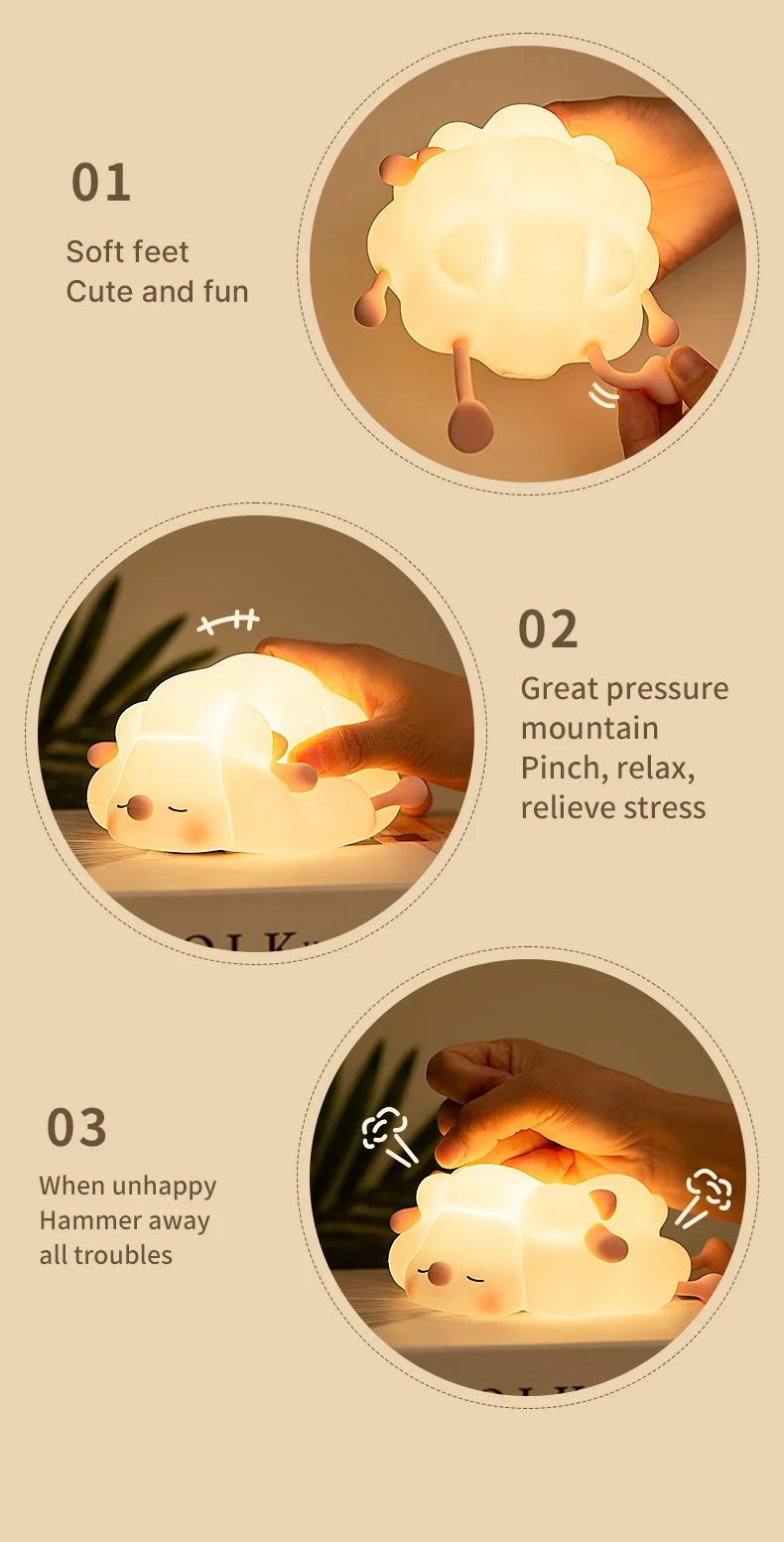 Cute Sheep LED Night Light Motion Sensor Kid’s Nightlights Q-version Animal Silicone Lamp Nursing Eye Bedroom Decoration Lamps