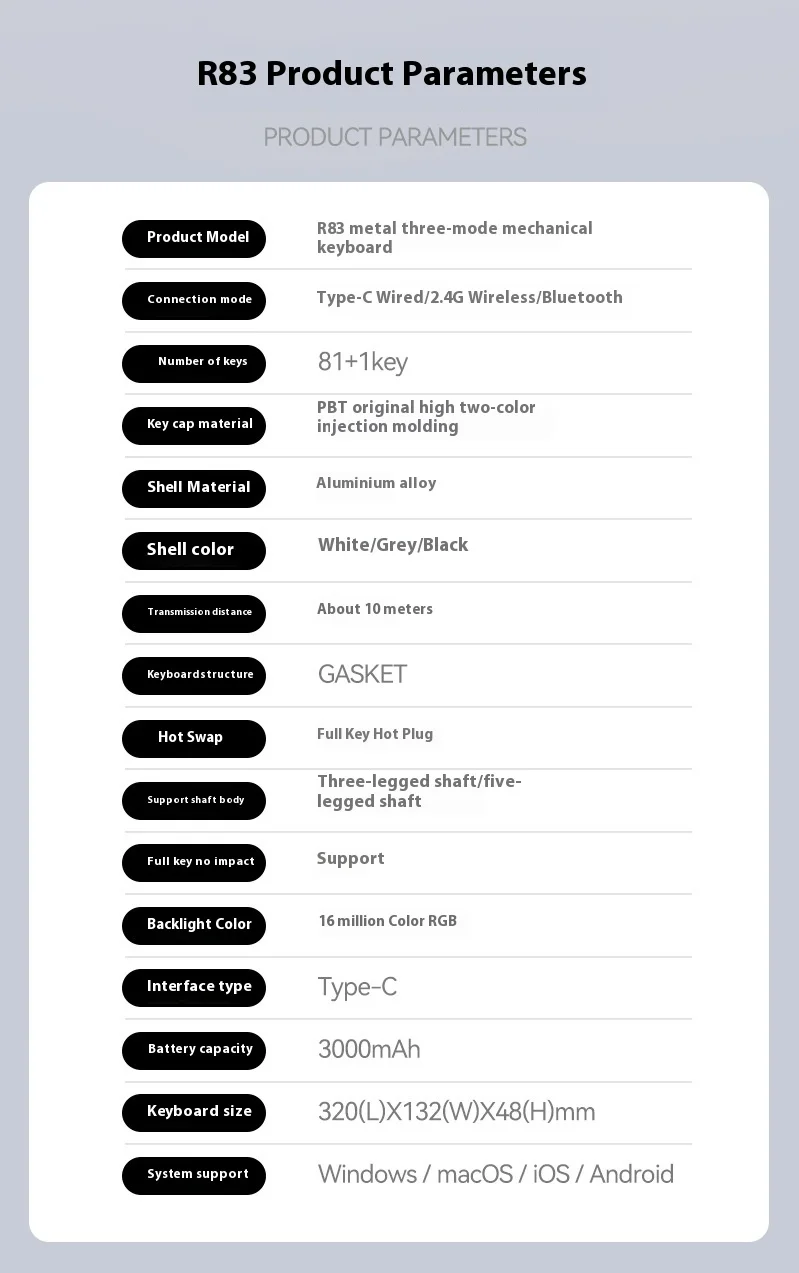 R83 metal 3mode mechanical keyboard