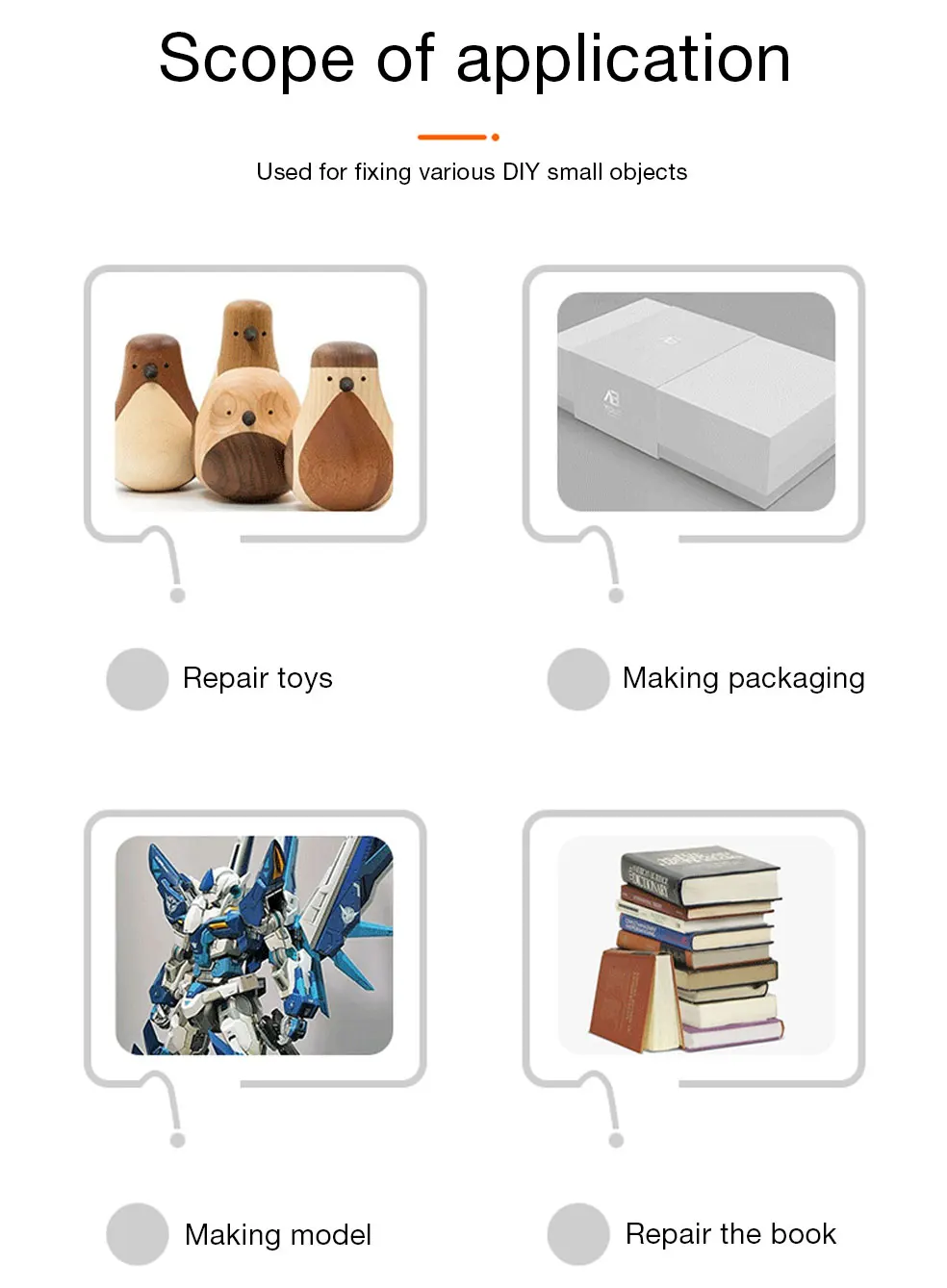 8. It Has a Wide Range Of Uses, Most Items Can Be Glued, Used For Various Diy Small Objects, Repair Toys, Books, Glass/Making Packaging, Models, Etc…