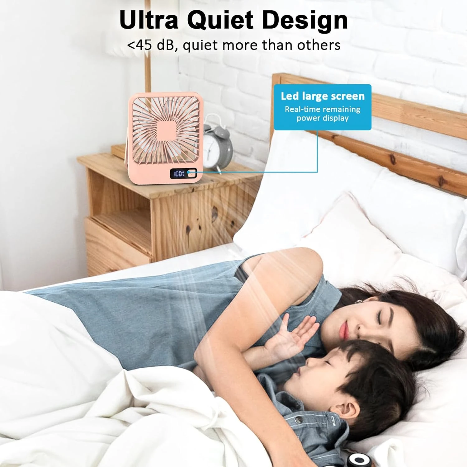 Desk Fan, Portable USB Rechargeable Fan, 180° Tilt Folding Personal Fan With Power Display, 5 Speeds Ultra Quiet Table Fan