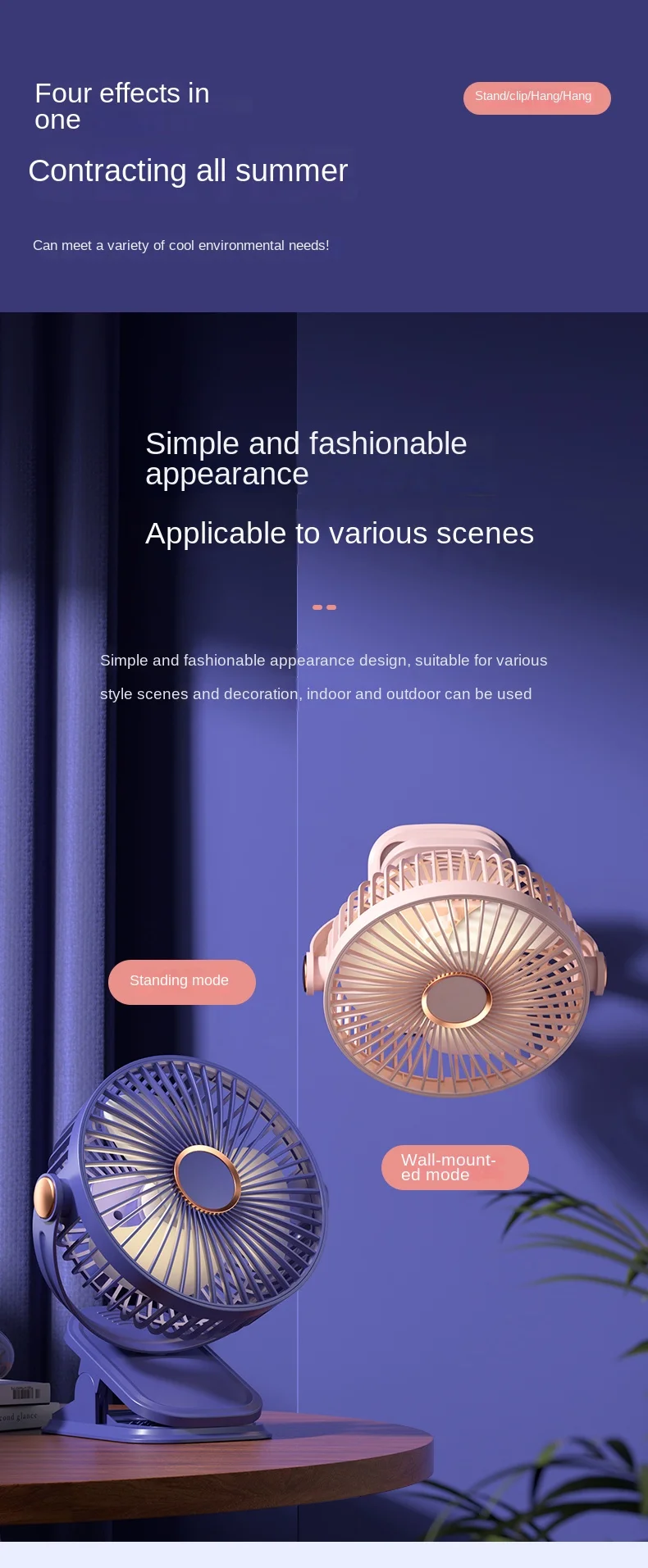 Desktop Fan Wall-mounted Fan Clamped Fan Hanging Fan Portable Rechargeable Fan Multi-functional Fan for Home Office ang Travel