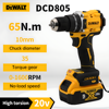 •Designed to help you complete demanding fastening and drilling projects, this 20V MAX* XR® Brushless 1/2 in. Hammer Drill/Driver delivers the durability and performance professionals need on jobsite. Quickly drive fasteners into thick material with its powerful brushless motor, which outputs up to 40% more Unit Watts Out compared to DCD796B using DCB205 battery or DCBP034 DEWALT POWERSTACK™ battery (sold separately)**. Speed through masonry drilling applications with up to 34,000 bpm thanks to an integrated hammer mode function. This lightweight, well-balanced Hammer Drill/Driver was built compact to help users comfortably work in tight spaces for extended periods of time. The 3-position, pivoting LED is designed to enhance visibility in dimly lit work areas with its 3 mode settings and up to 70 Lumens of brightness.