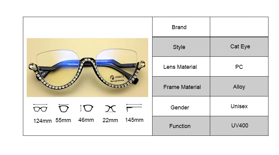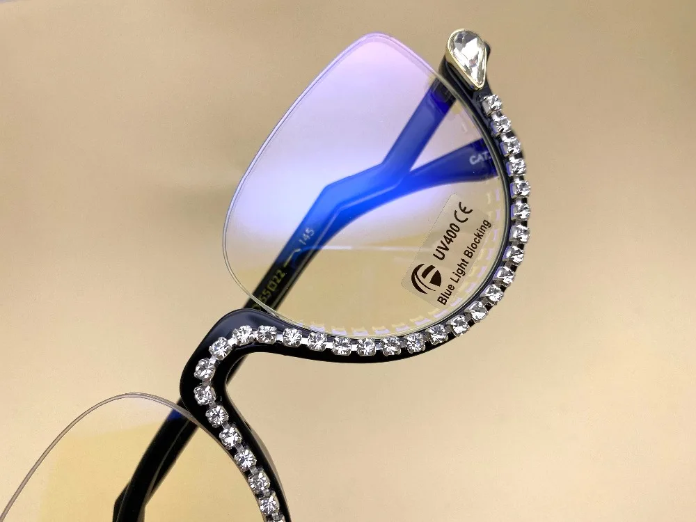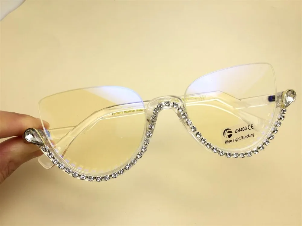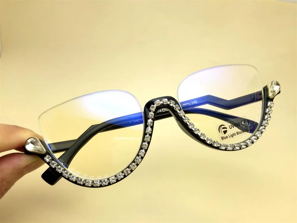 Diamond Glasses Women Myopia Blue Light Blocking Half Frame Eyeglasses Brand Designer Fashion Transparent Cat Eye Glasses -1.5