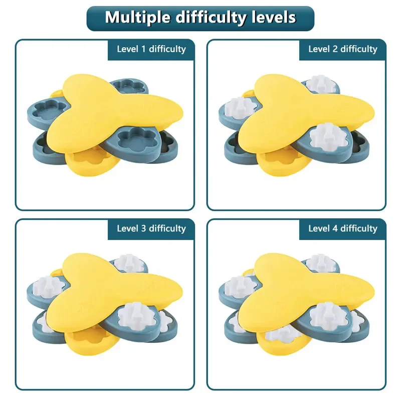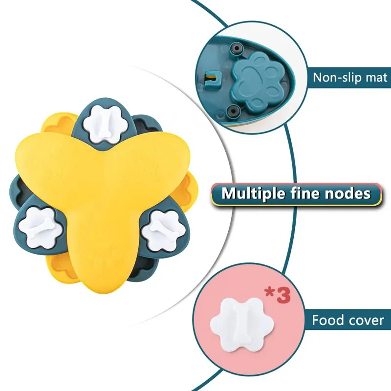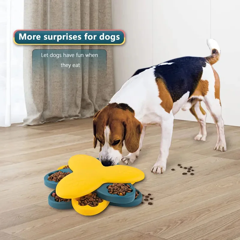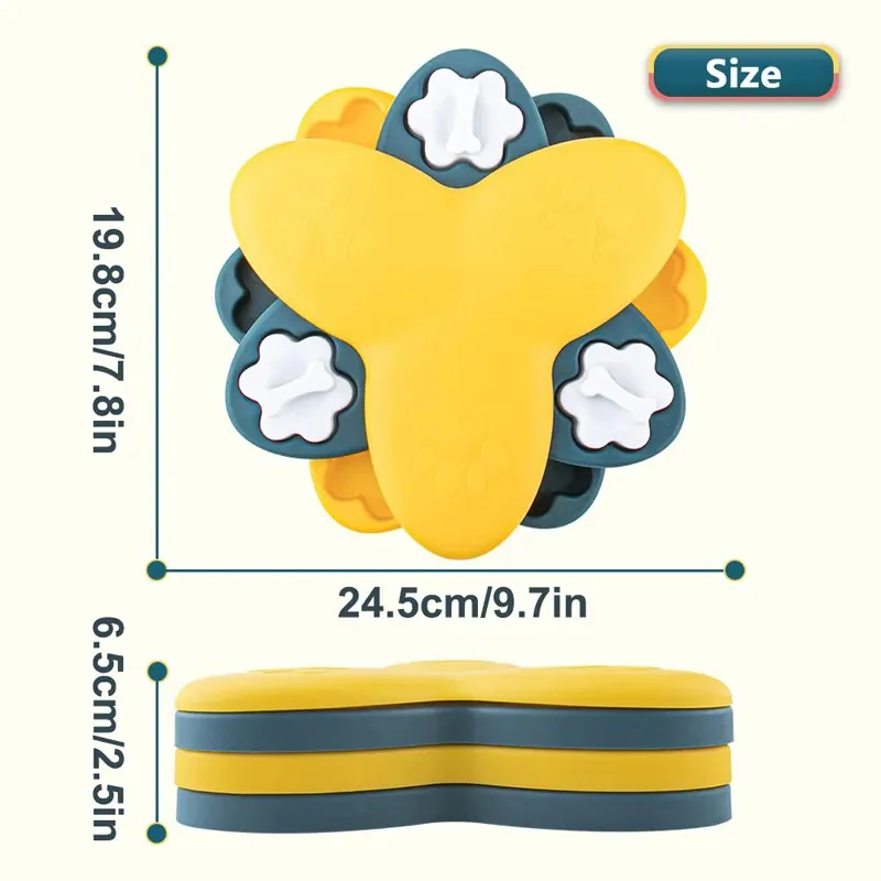 Easy to Clean and Anti-skid Design at Bottom: This slow feeder toy is easy to wash, just wash by hand with mild soap and warm water. Make sure all compartments are dry before using it. The basin bottom is equipped with a rubber anti-slip pad, pet arch, dial, and other actions that caused the food box displacement to overturn.