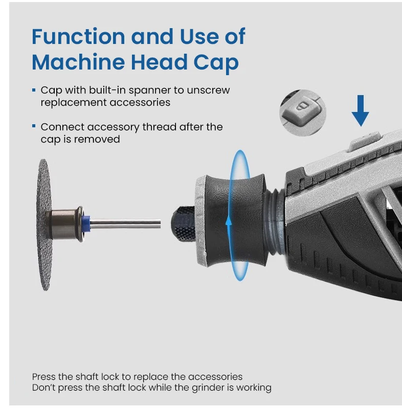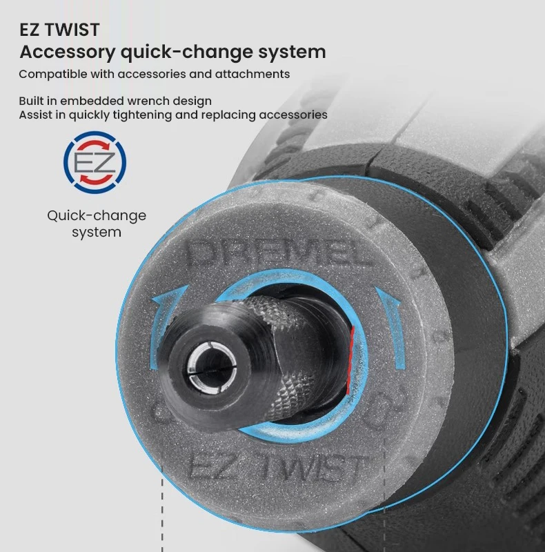 3. EZ TWIST quick-lock design, built-in wrench, replace accessories quickly without additional tool