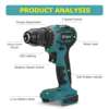 – Cordless power drill has a compact lightweight design, get rid of the trouble of finding a socket for charging with a wired drill.