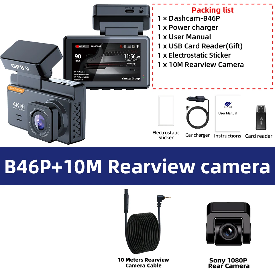 ➤Rear Camera Upgrade: Support max 10 meters cable Rear Camera ➤Add Features: Night Vision, 3840x2160P front Camera, 4K video resolution, WiFi, Built-in GPS tracking