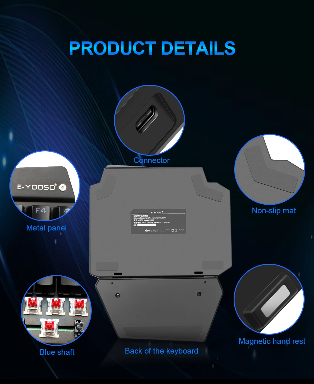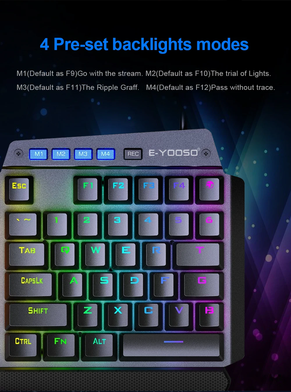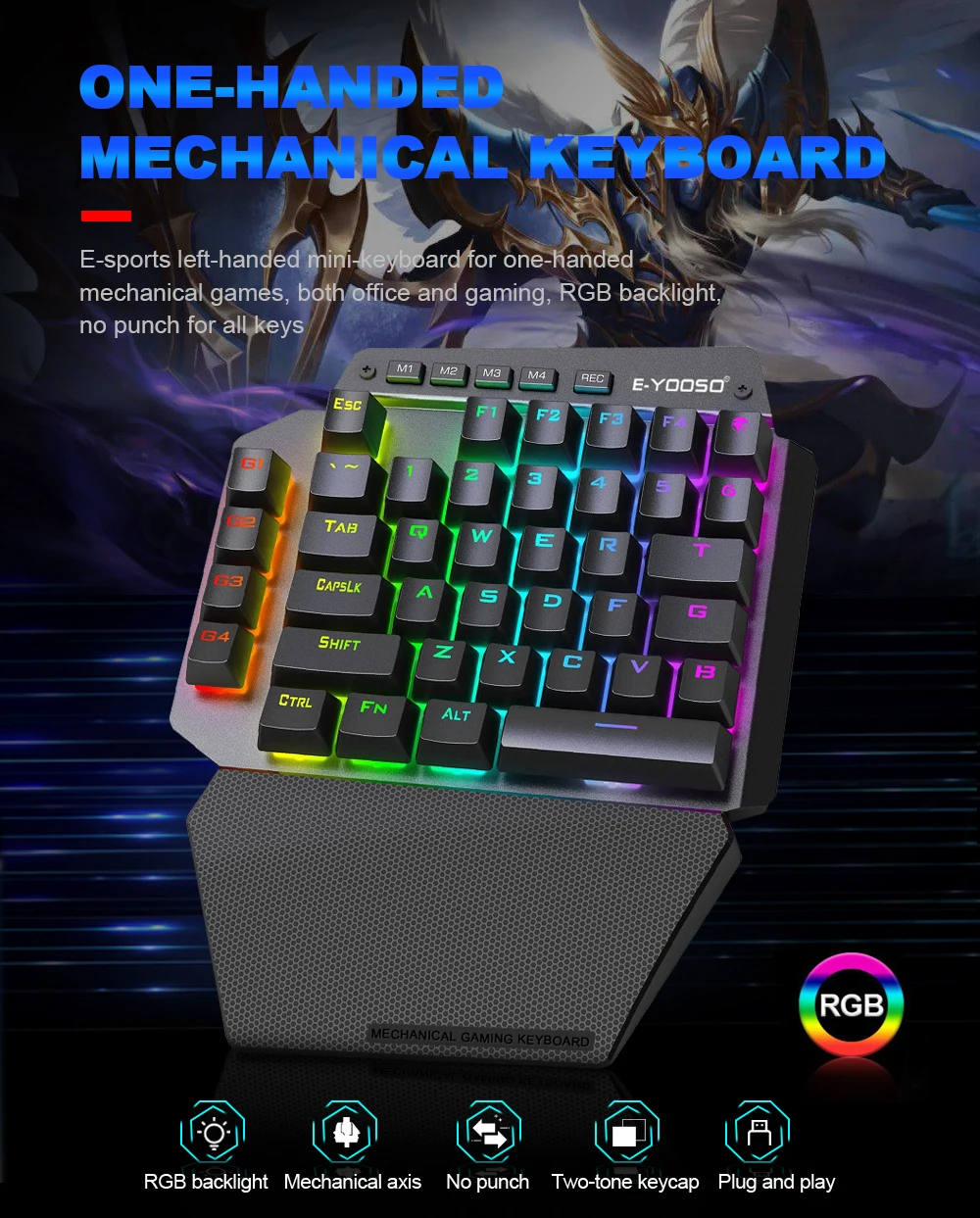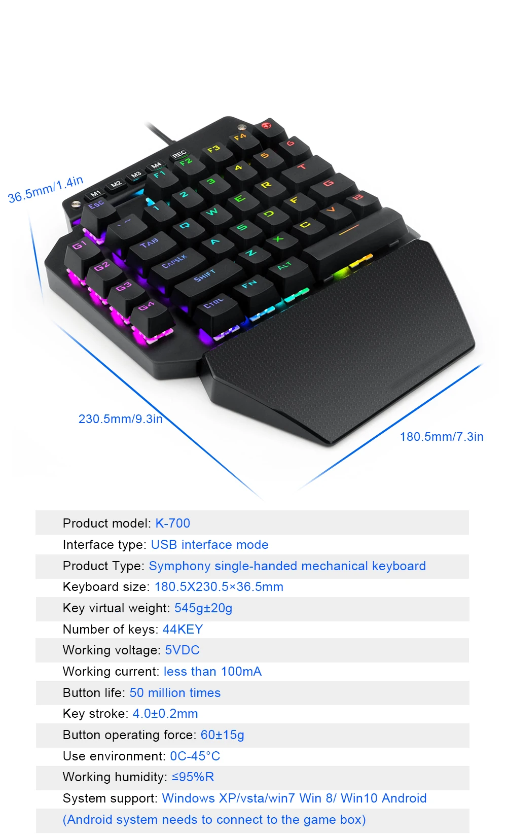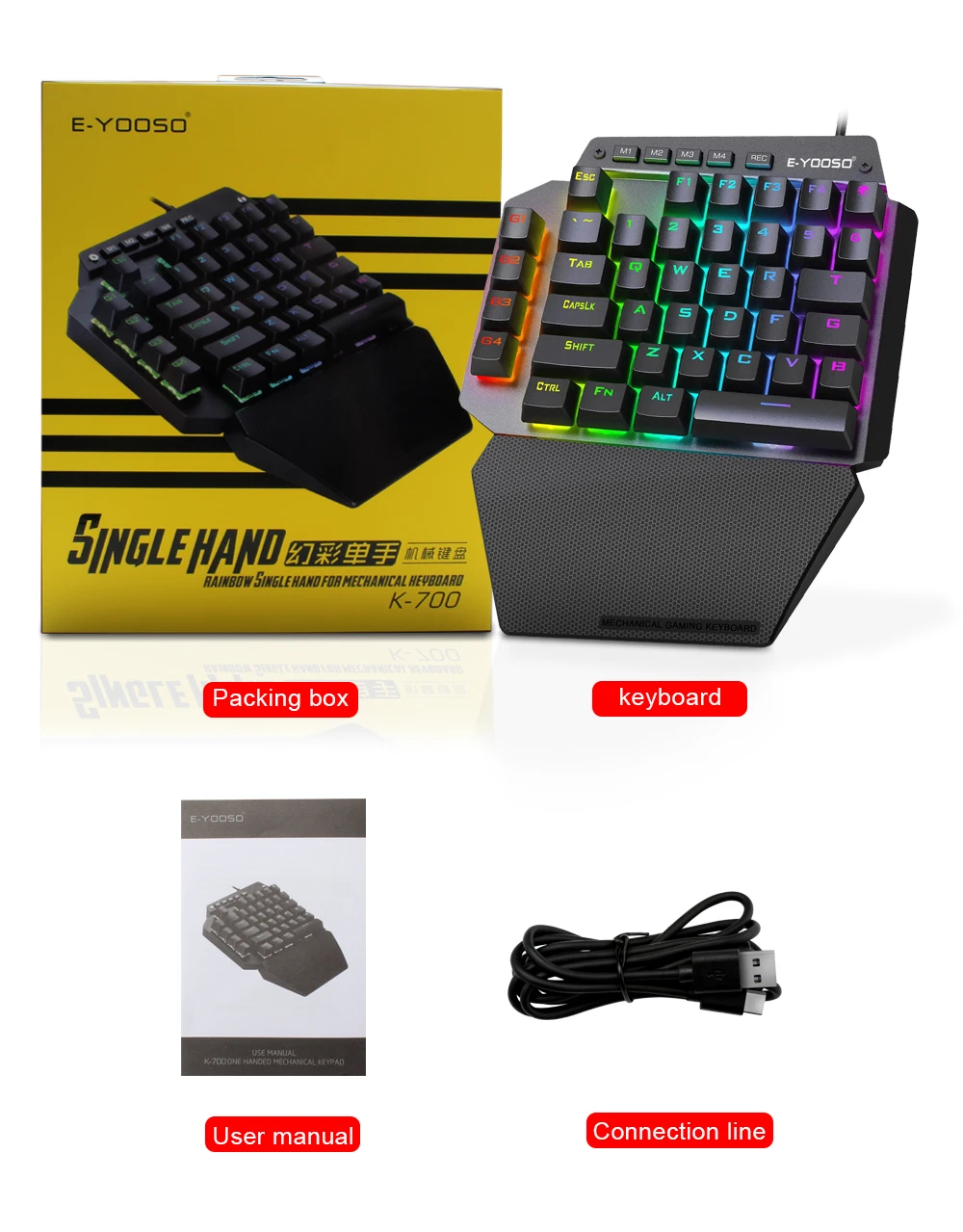 E-YOOSO K700 RGB 44 Key One-handed Mechanical Gaming Wired Keyboard Red Switch programmable for Computer PC FPS LOL/PUBG Games