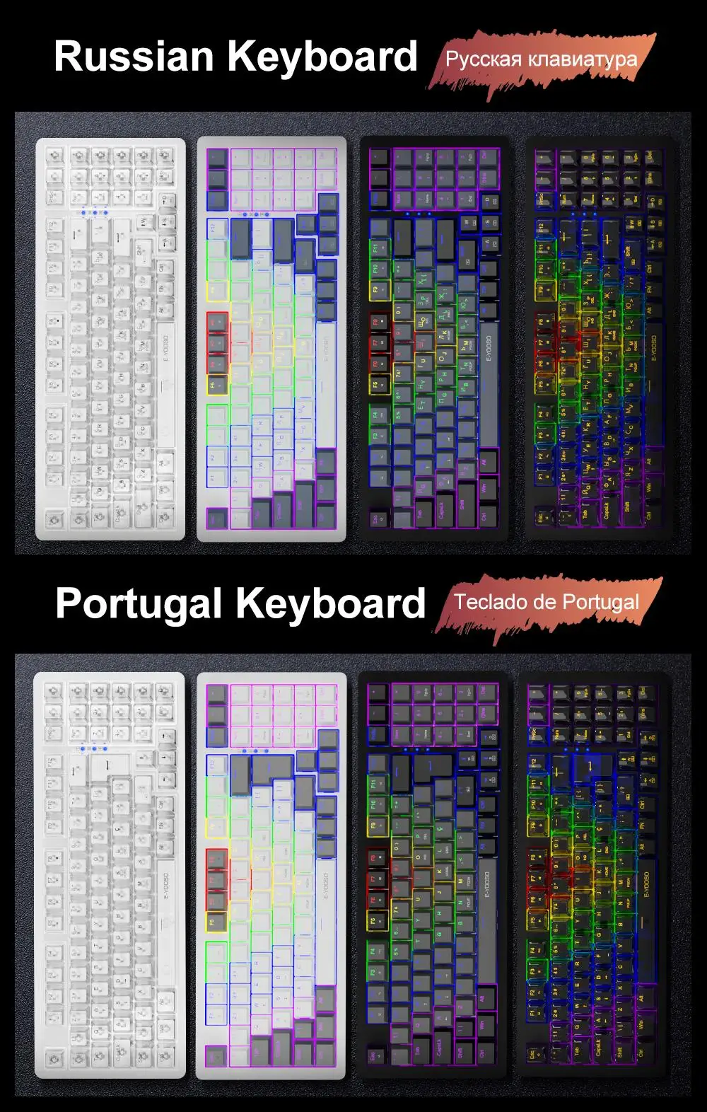 Practical Wired 94 Keys – E-YOOSO 85% layout Z94 in wired mode meets the user’s need for separate arrow keys and number keys.The 94-key layout provides the ultimate balance of compactness and 104-key functionality, allowing for the smoothest habit curve.