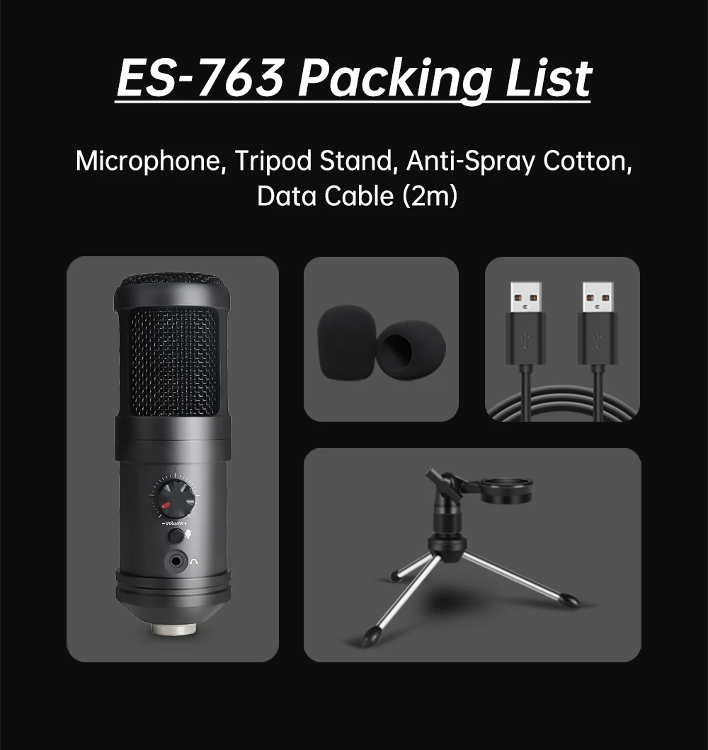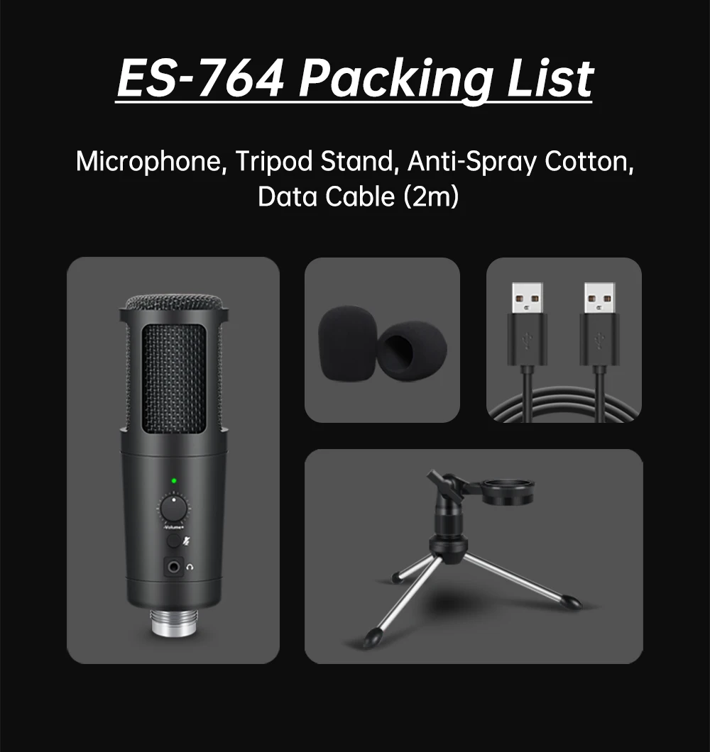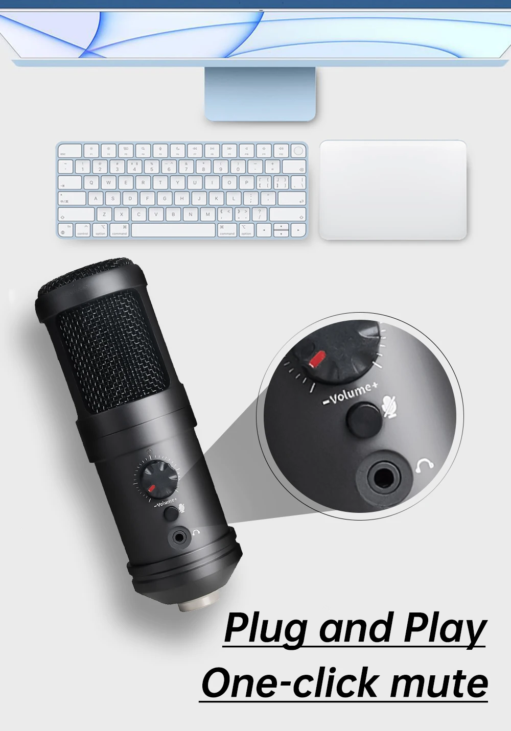 EALSEM 763 764 USB Microphone,Condenser Podcast Microphone with Plug&Play,One-Click Mute,for PC,Mac,PS4,Recording,Live,YouTube