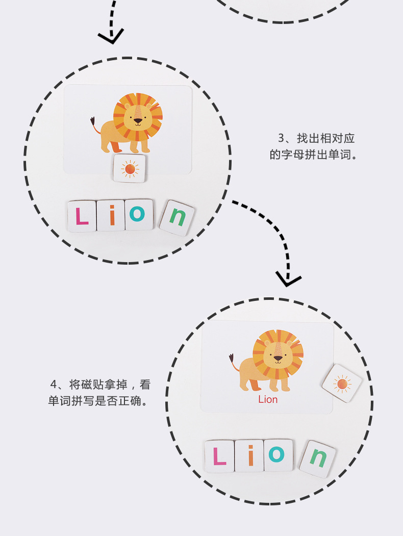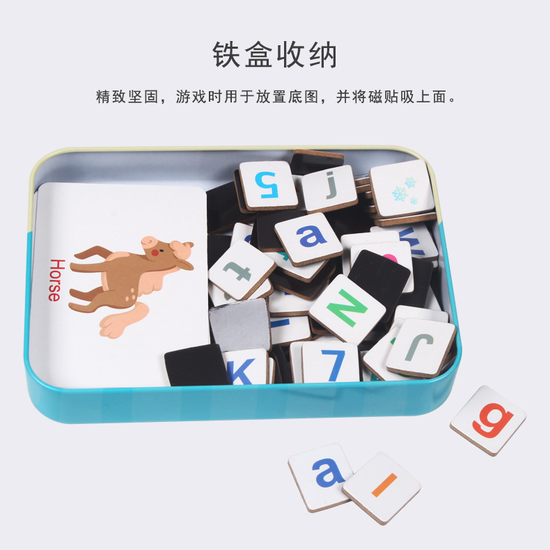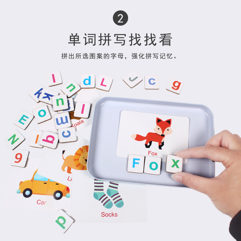 Early Learning Education Montessori Toy for Kids Letter Spelling Magnetic Wooden Puzzle Flash Cards Game English Words Learning