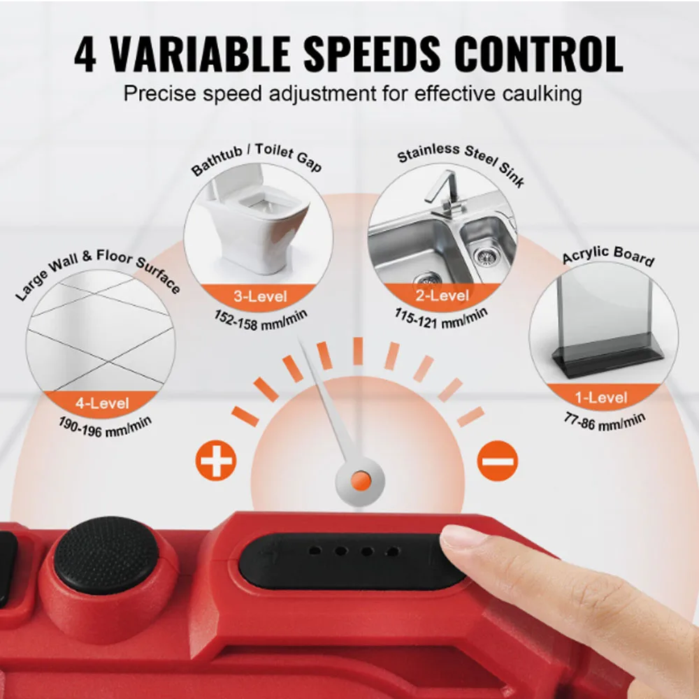 【4 Gear Adjustable Speed】The caulking gun has four gears of variable speed, the pushing speed can be adjusted from 0 to 196mm/min. The variable trigger can also control the flow rate, The corresponding flow rate can be selected according to different needs, which can better control the flow of glue.