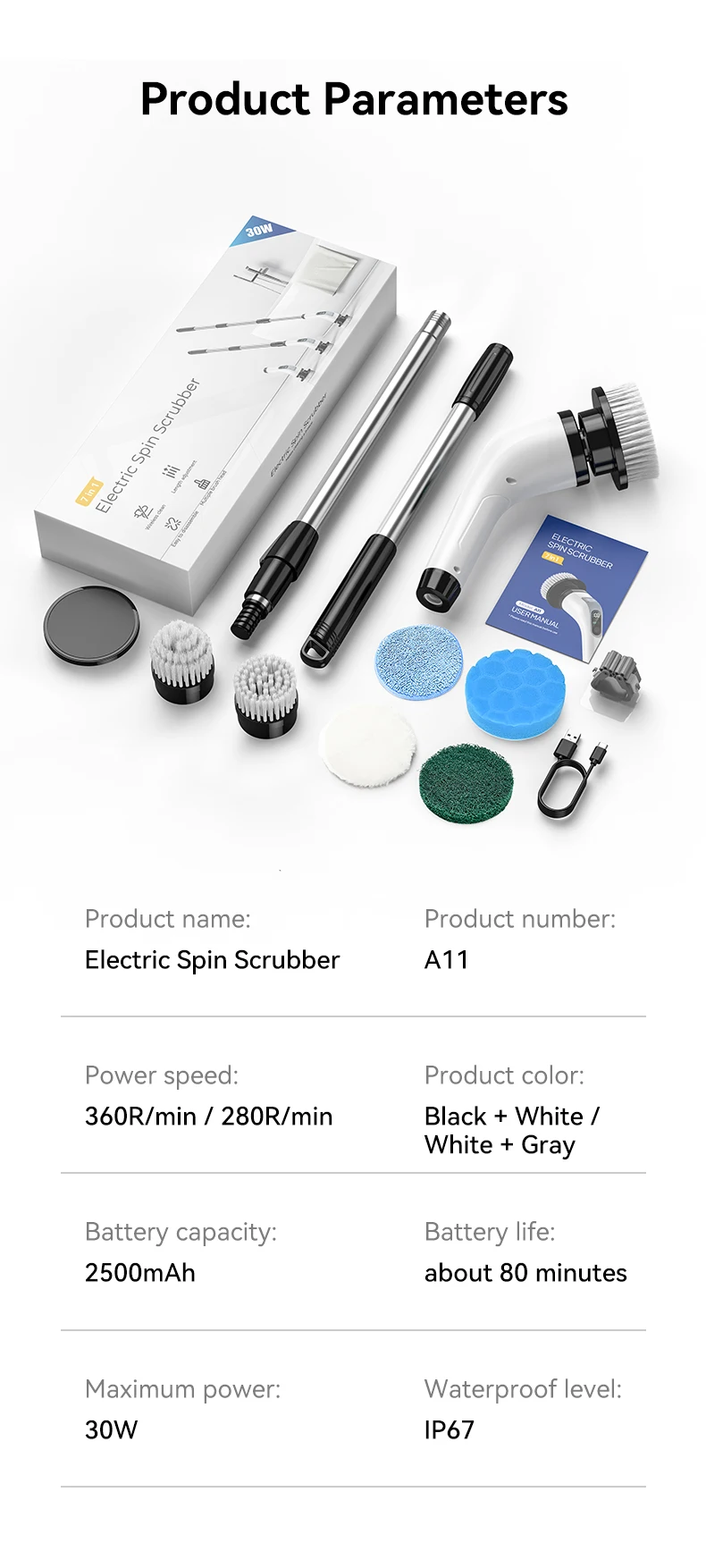 Electric Cleaning Brush Cordless Handheld Shower Scrubber Spin Cleaner Wireless Electric Rotary Clean Shower Cleaning Brush