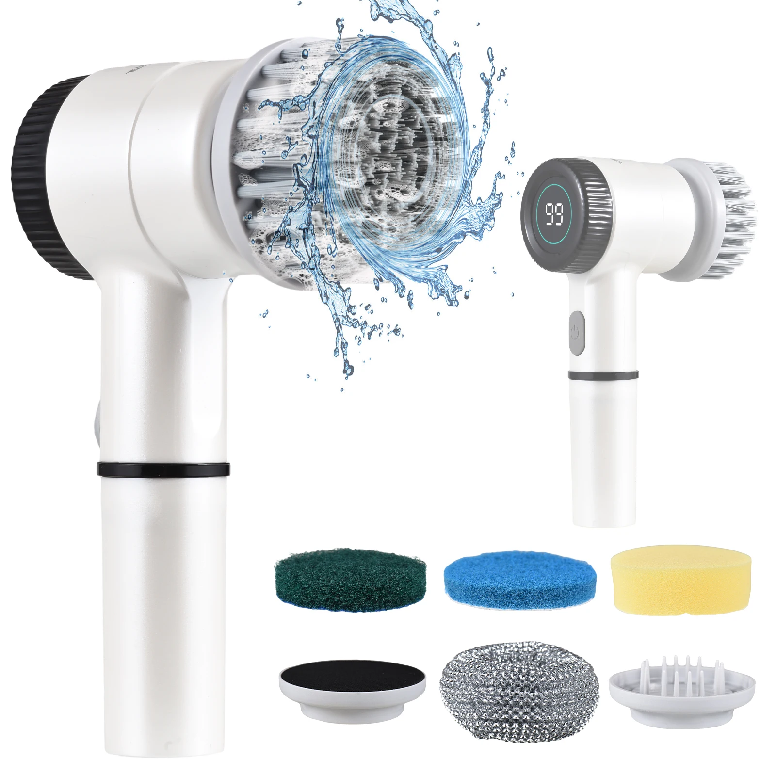 【Multiple Interchangeable Brush Heads】: Included in the package are 5 different brush heads to cater to different cleaning needs. From a fiber brush head for general cleaning to a nylon brush head for tougher stains, each brush head is designed to provide optimal results without causing damage to the surfaces being cleaned.