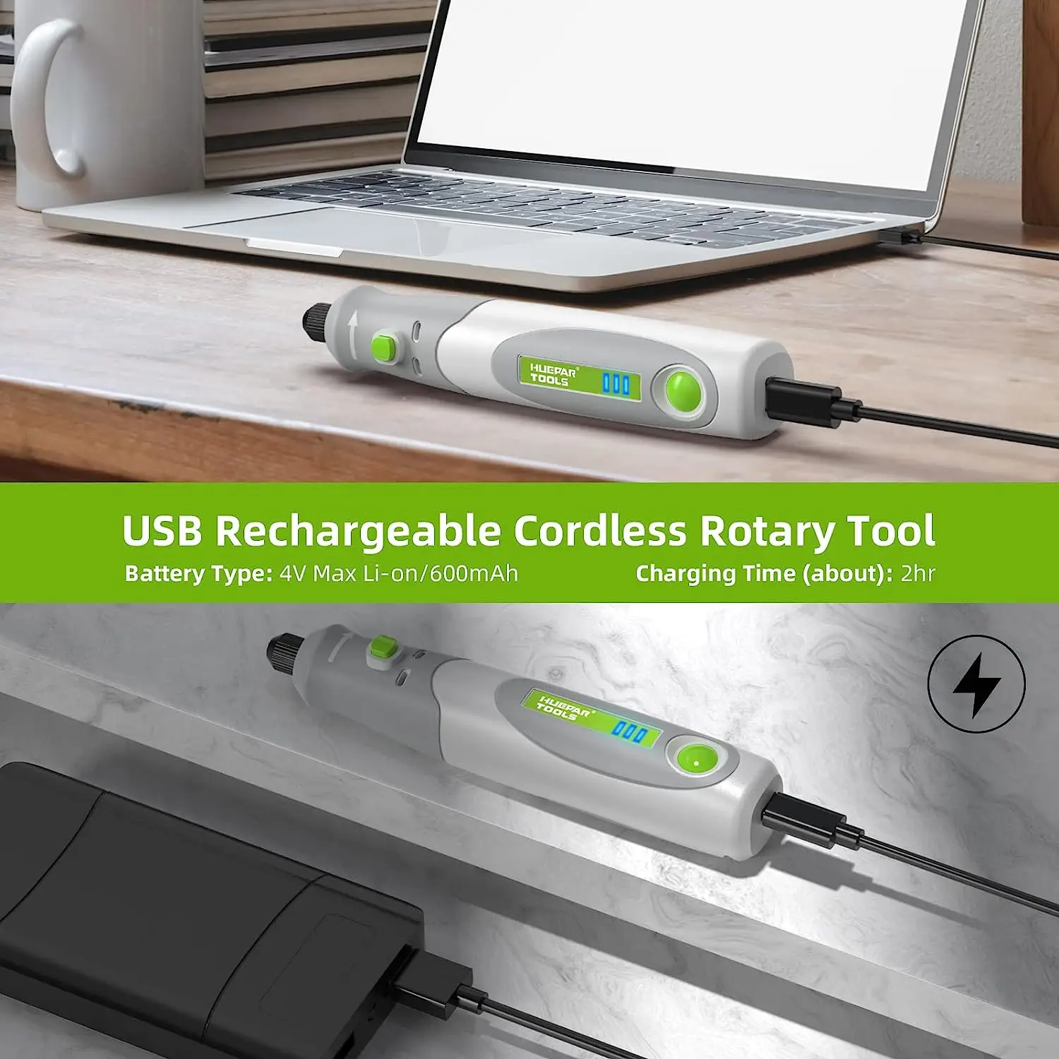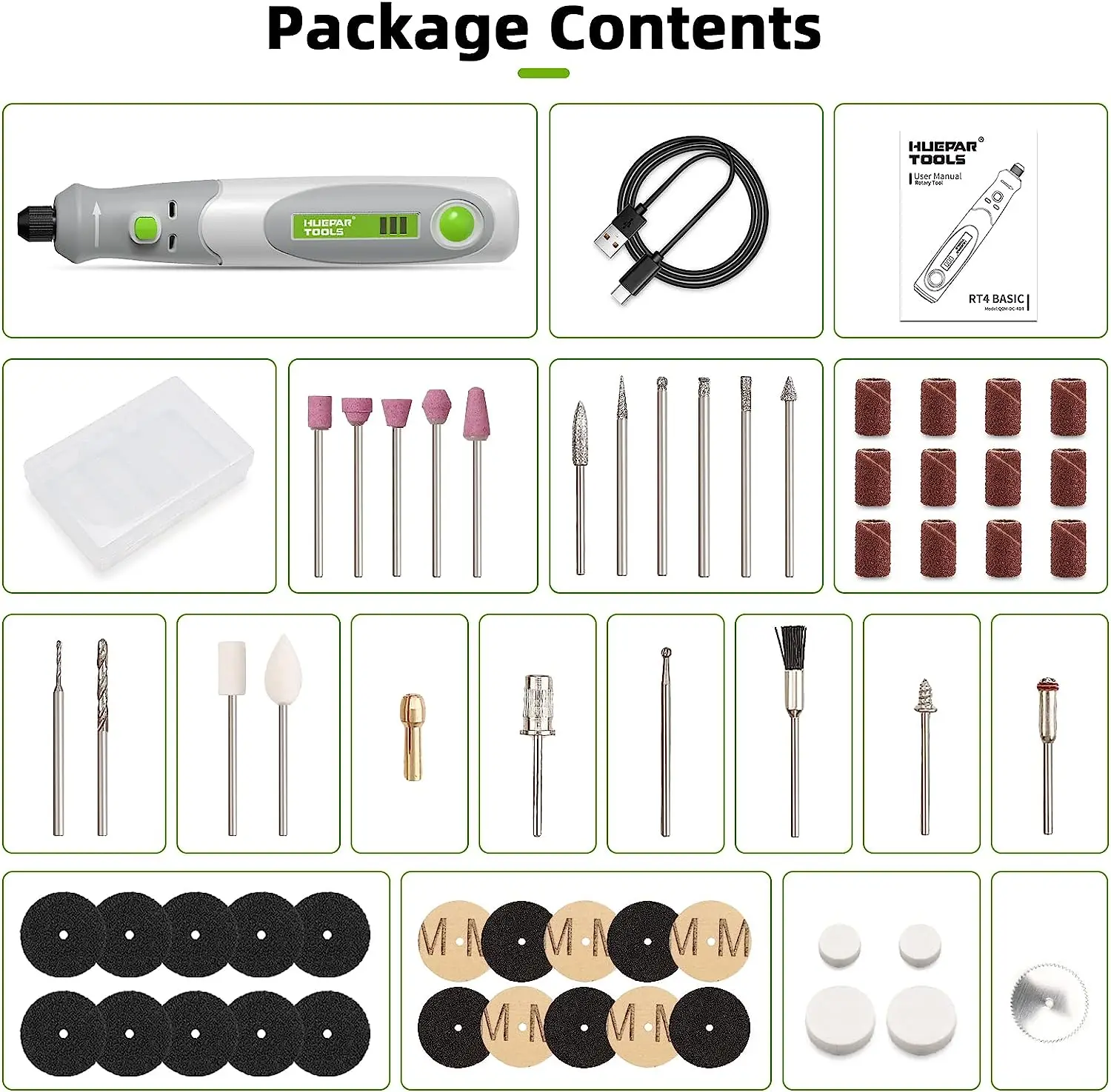 Huepar Tools MINI Rotary Tool 4V With 58pcs Accessory Kit (Comfortable Pen-Designed Handy Size)