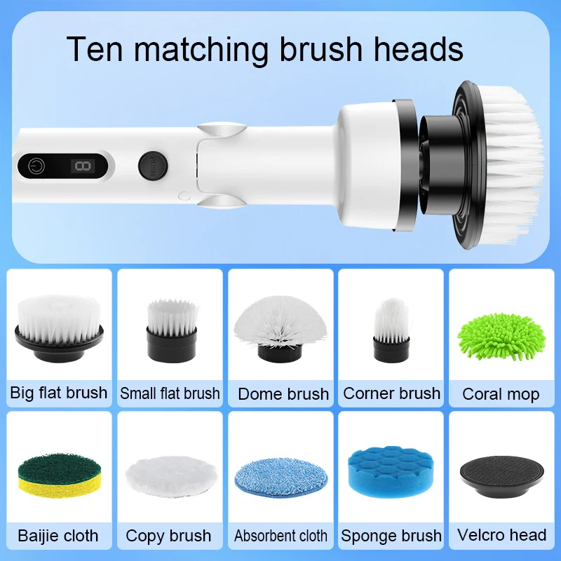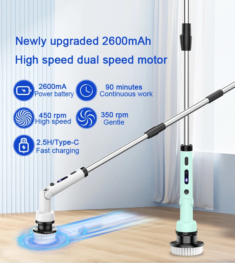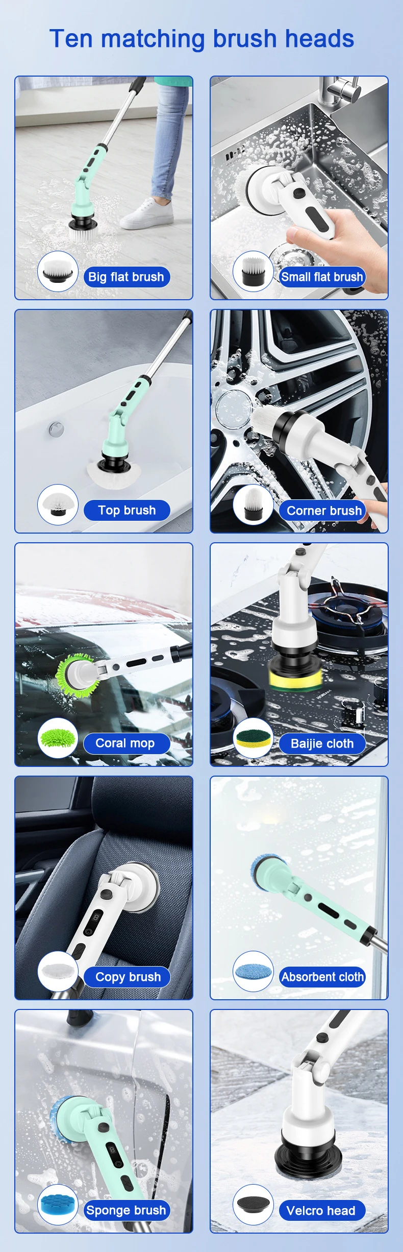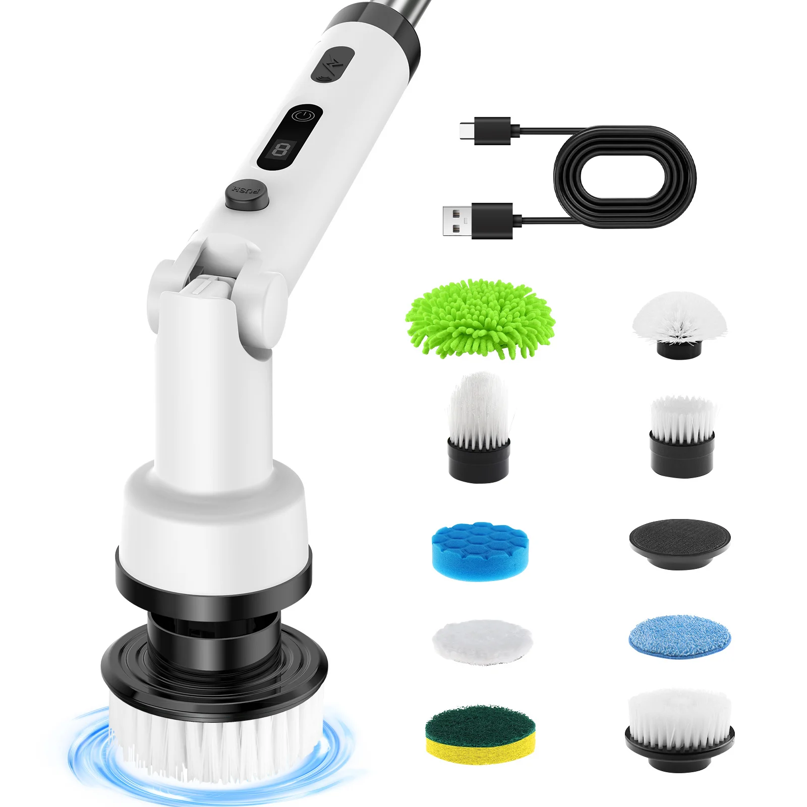 Electric Spin Scrubber 9 in 1 Electric Cleaning 180 degree rotation Power Scrubber with 9 Replaceable Brush Heads Shower Scrubber for Bathroom, Car, Floor