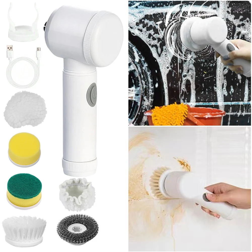 Electric Spin Scrubber USB Rechargeable Cordless Portable Scrub Brush Multifunctional Dishwashing Brush for Bathroom Kitchen Car
