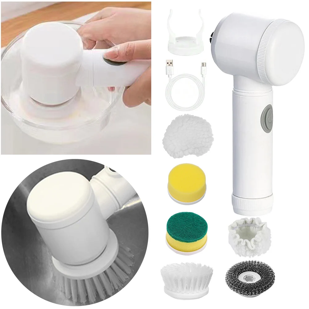Electric Spin Scrubber with 5 Replaceable Brush Head Power Electric Cleaning Brush USB Rechargeable Cordless Portable Scrub Brush Multifunctional for Bathroom/Tiles/Floor/Bathtub/Kitchen