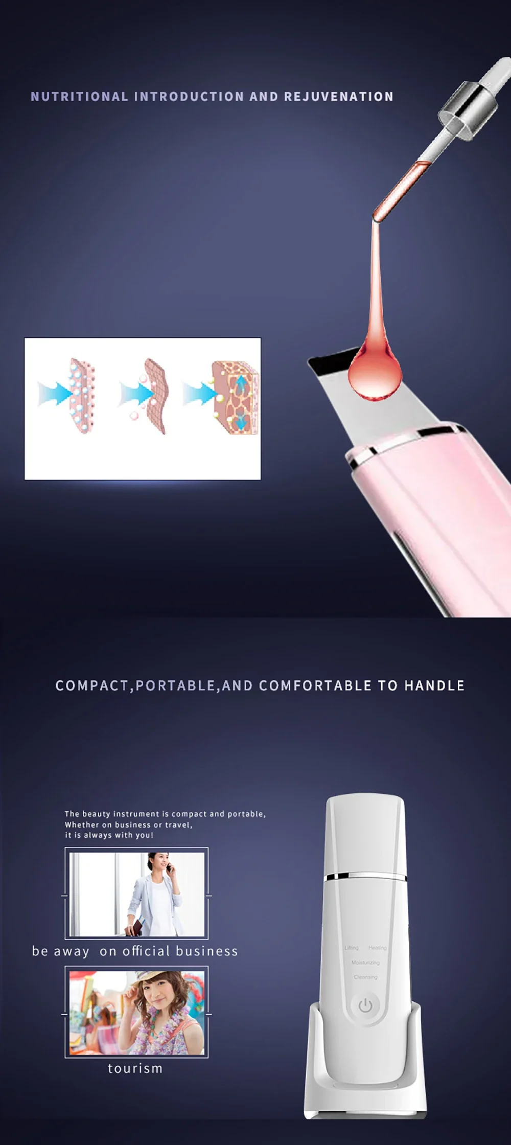 By adopting ultrasonic vibration theory and tepid effect, it can promote blood circulation inside the dermis, accelerate lymphatic return, discharge toxin which accumulated in the deeper skin and eliminate dead cell to avoid Corneous layer cells accumulation excessively, thus to make the moisture and nutrition to transfer rapidly, enhance cell’s penetrability, strengthen skin care product absorption, improve skin moisten.