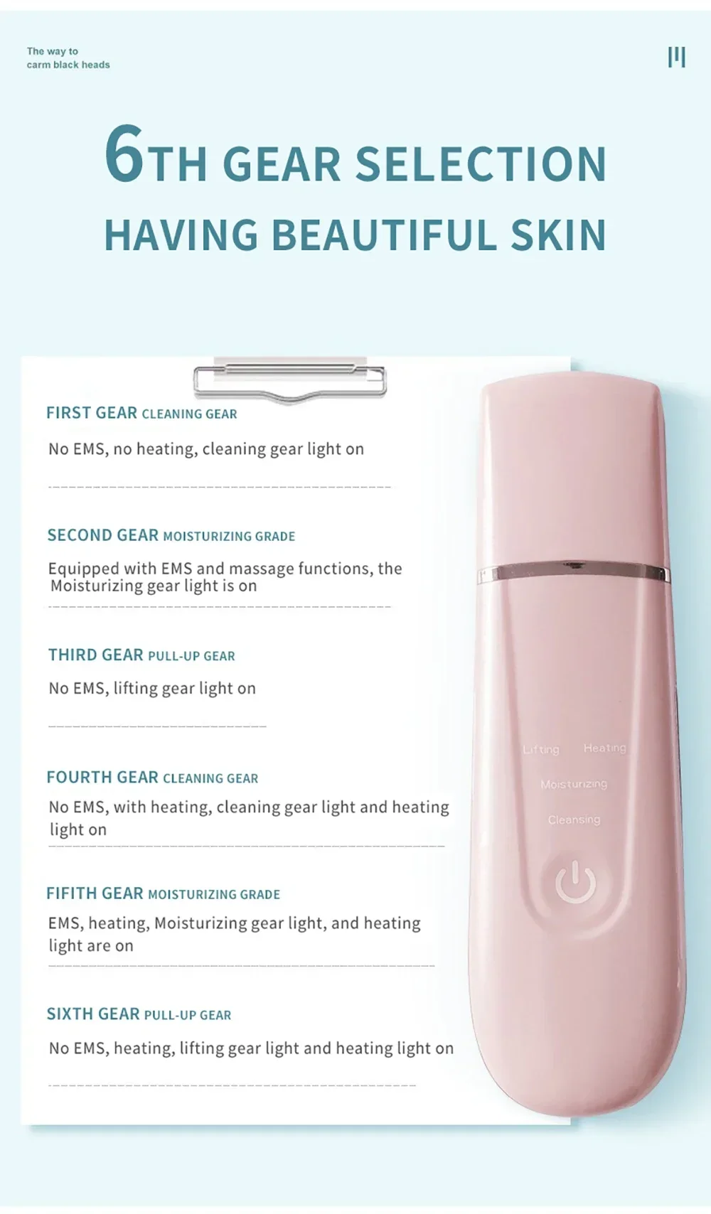 By adopting ultrasonic vibration theory and tepid effect, it can promote blood circulation inside the dermis, accelerate lymphatic return, discharge toxin which accumulated in the deeper skin and eliminate dead cell to avoid Corneous layer cells accumulation excessively, thus to make the moisture and nutrition to transfer rapidly, enhance cell’s penetrability, strengthen skin care product absorption, improve skin moisten.