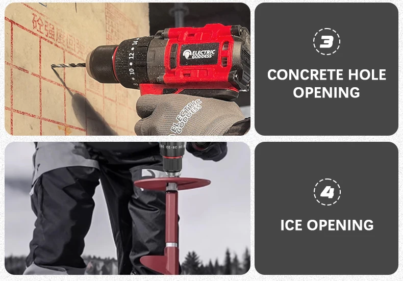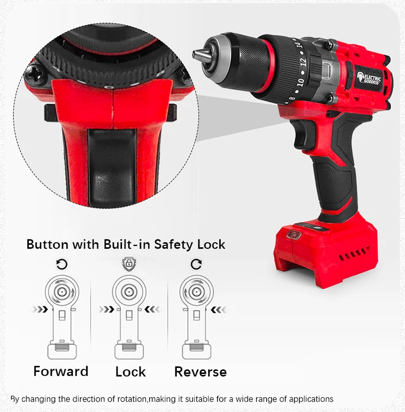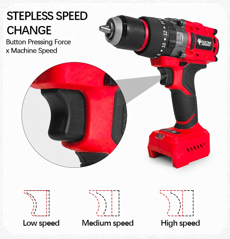 4: Variable speed: The drill has a variable speed trigger, allowing the user to control the drilling speed according to the task at hand.