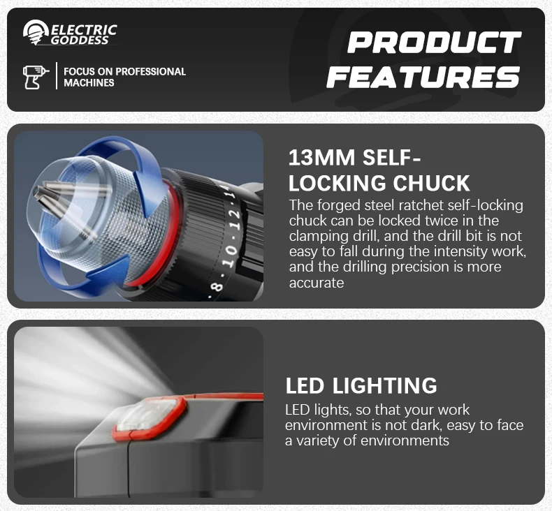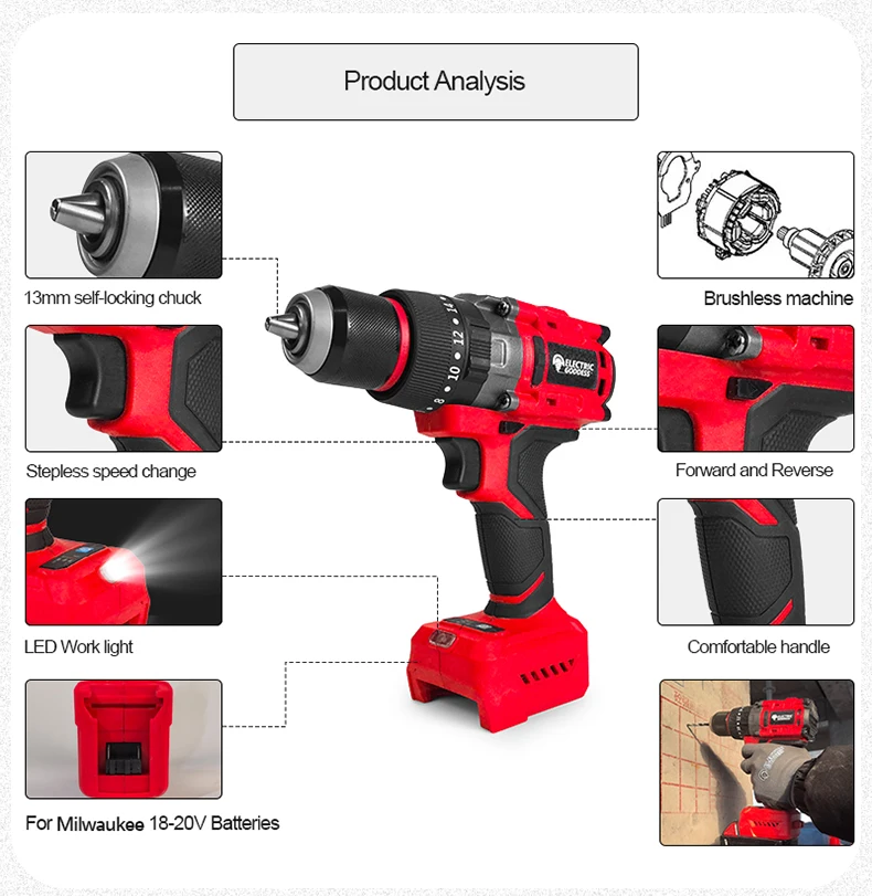 ElectricGoddess Brushless Impact Drill 120N Mini Electric Drill Cordless Electric Screwdriver Repair Milwaukee Electric Tool Set