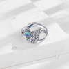 Eudora 925 Sterling Silver Wolf on the Moon Adjustable Ring Moonstone Wolf Ring Natural Abalone Shell Jewelry for Men’women Gift