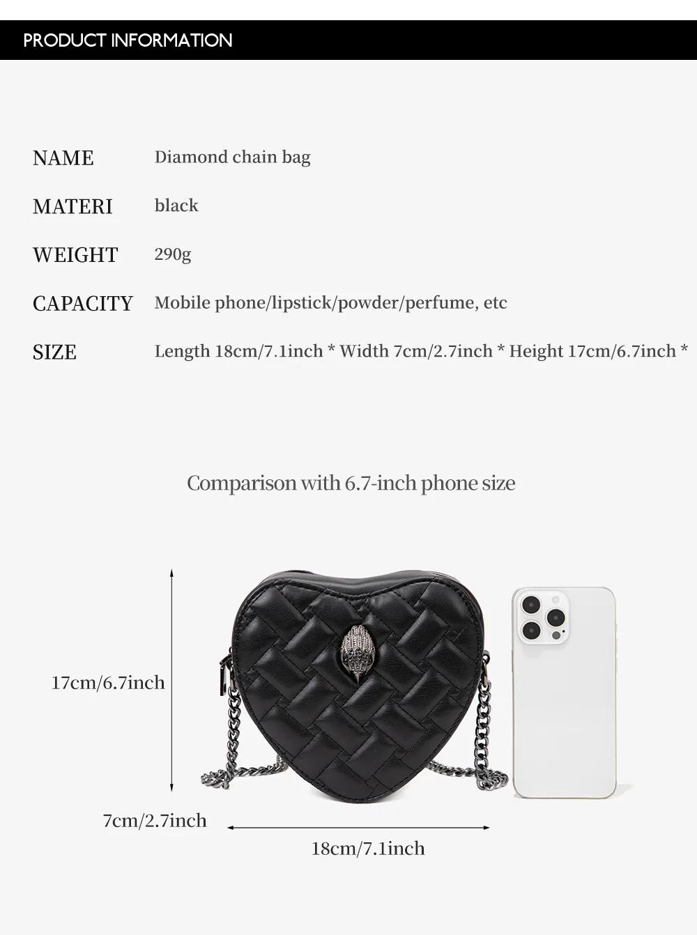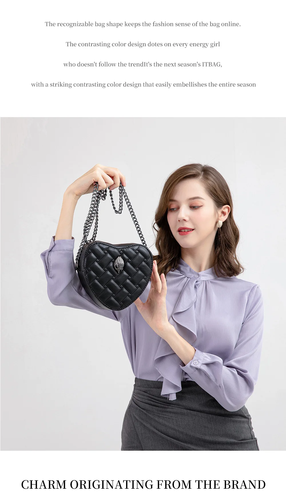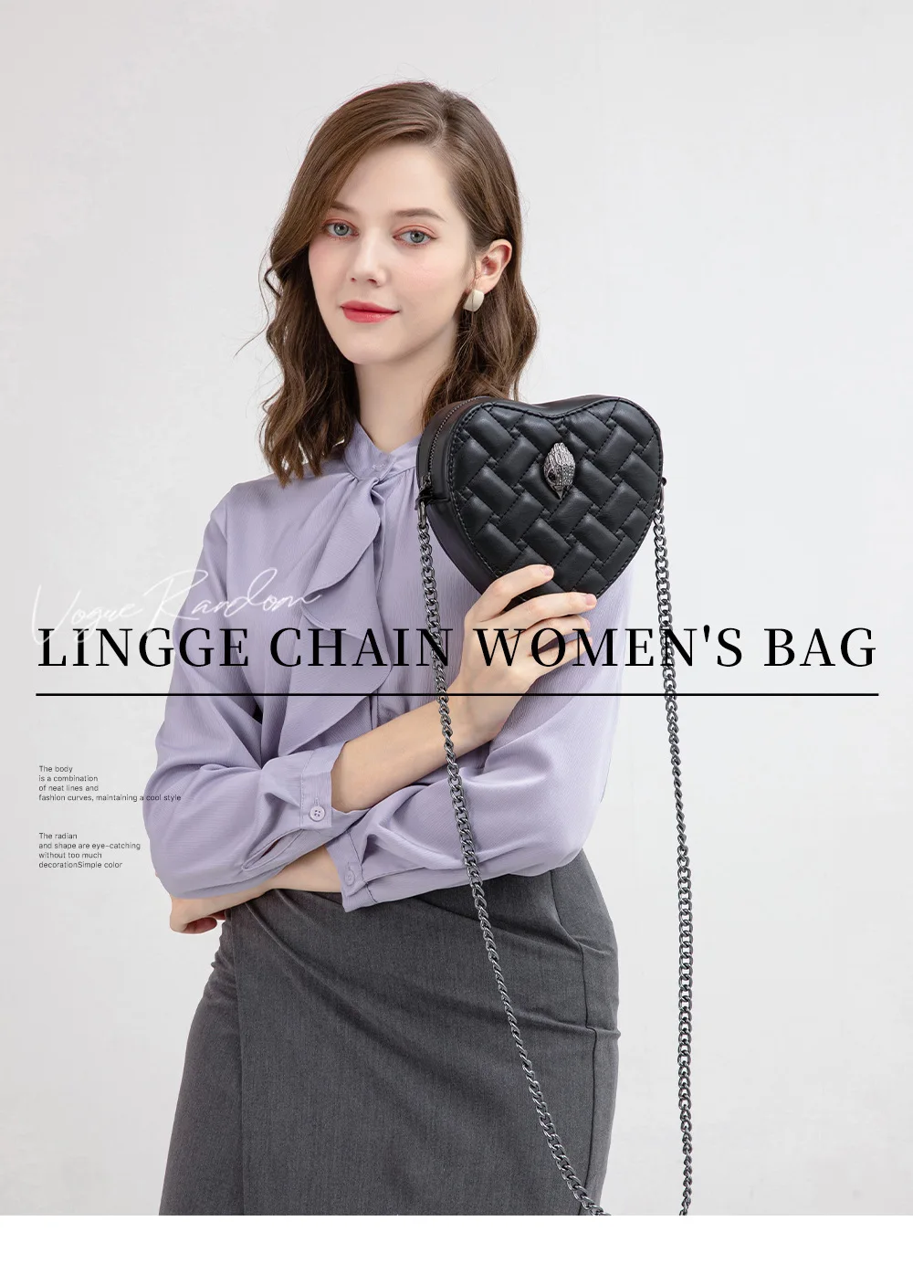 European and American-border Women’s Bag Heart-shaped Quilted Crossbody Bag Bird Shoulder Bag Chain Women’s Bag